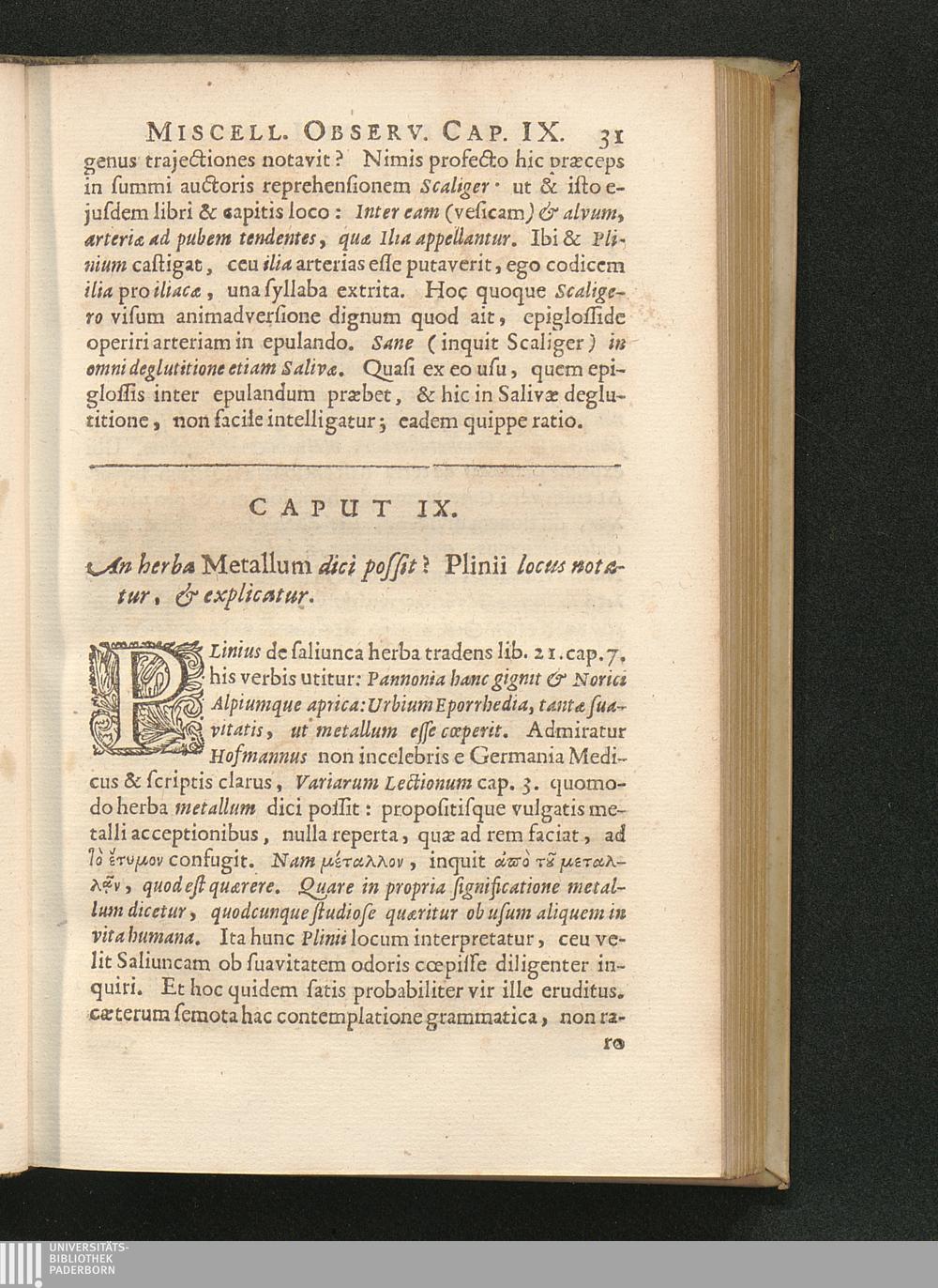 Cap. IX. An herba Metallum dici possit? Plinii locus notatur, & explicatur.