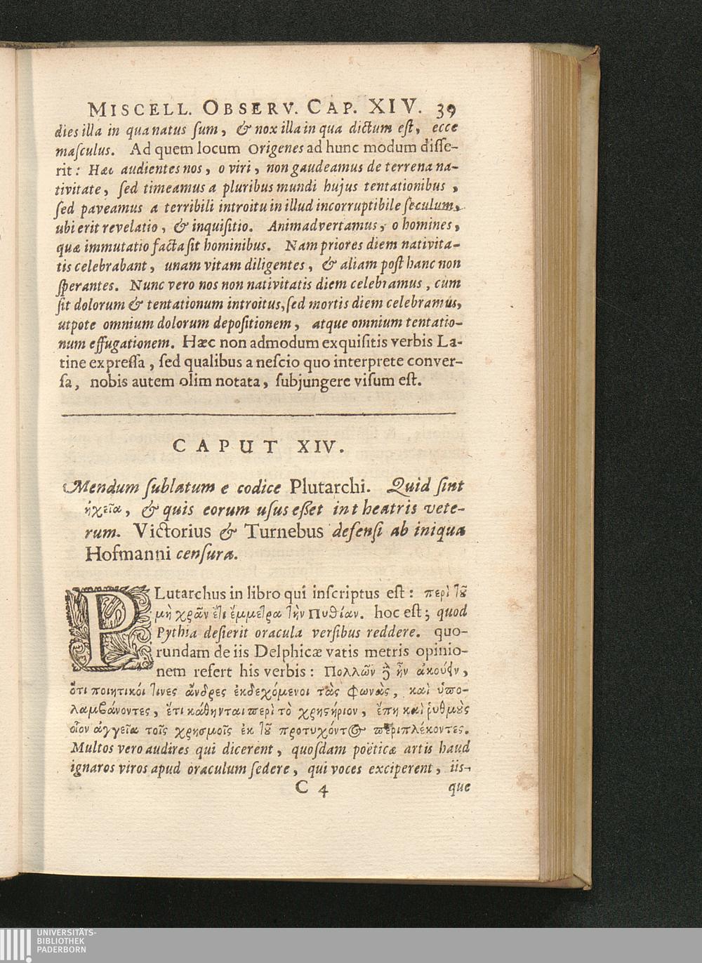 Cap. XIV. Mendum sublatum e codice Plutarchi. Quid sint ήχεια, & quis eorum usus[...]