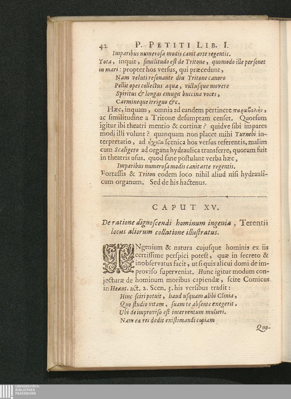 Cap. XV. De ratione dignoscendi hominium ingenia, Terentii locus aliorum collatione[...]