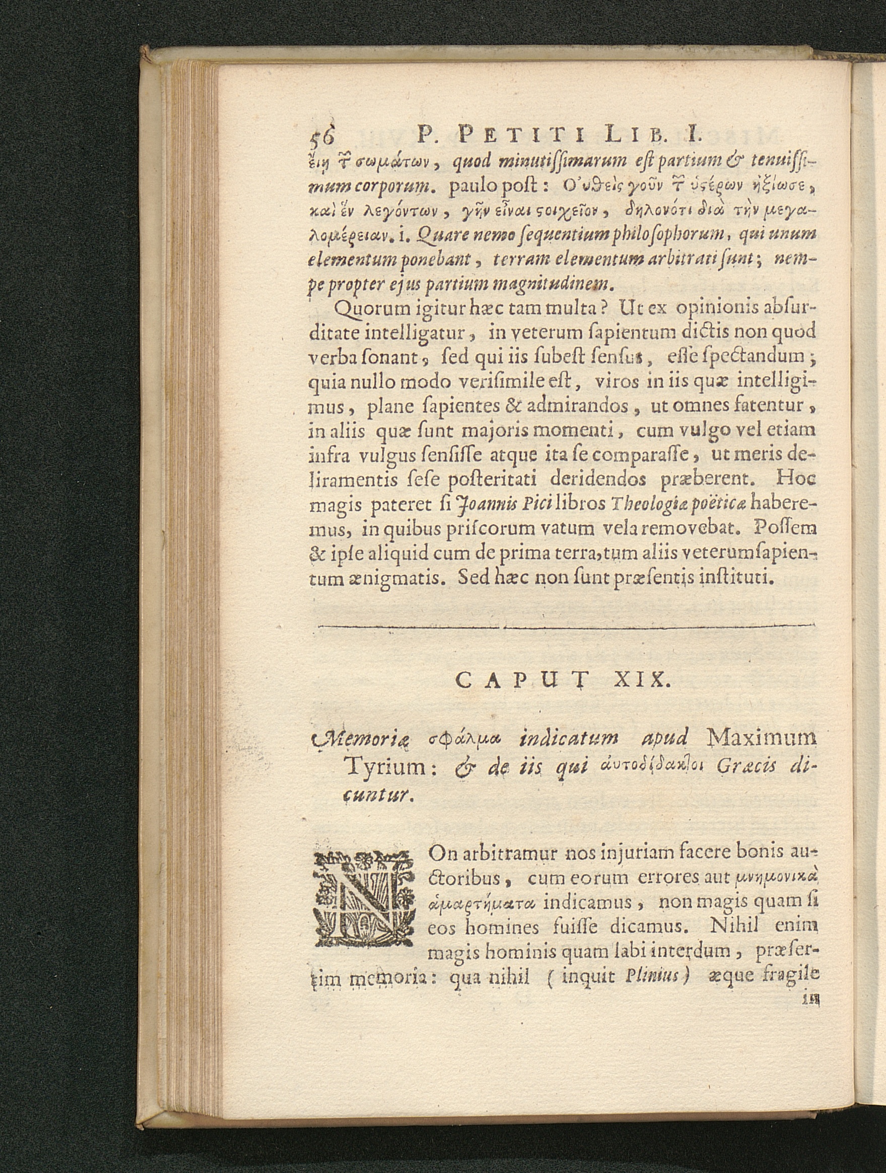 Cap. XIX. Memoriae σϕάλμα indicatum apud Maximum Tyrium: & de iis, qui [...] Graecis[...]