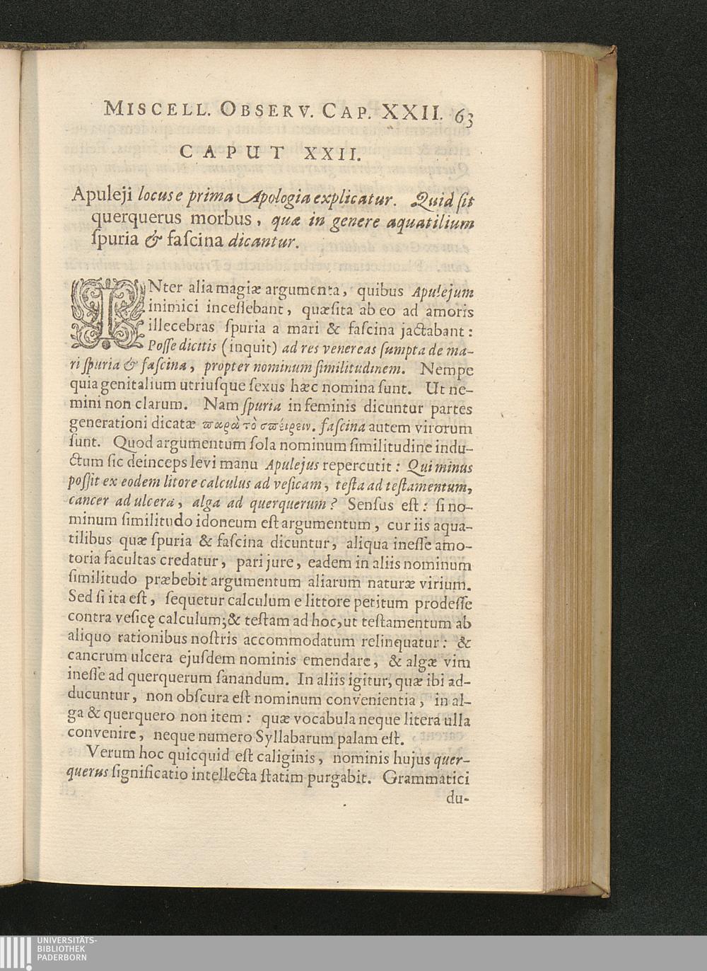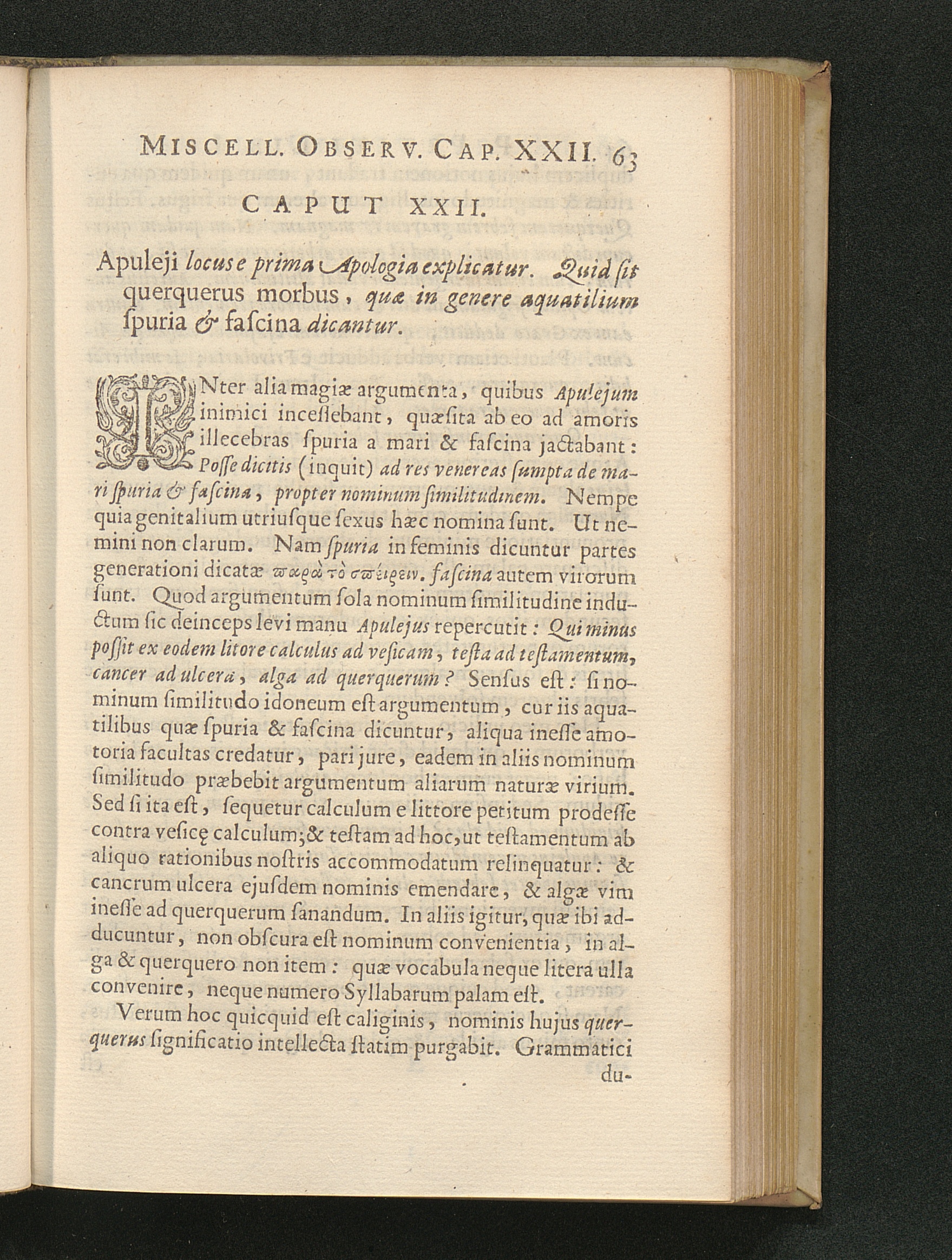 Cap. XXII. Apuleji locus e prima Apologia explicatur. Quid sit querquerus morbus;[...]