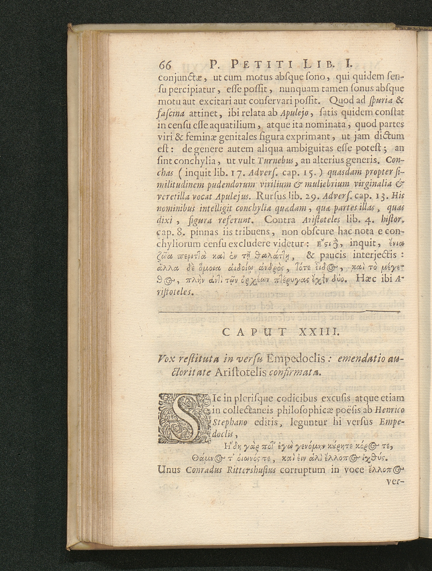 Cap. XXIII. Vox restituta in versu Empedoclis: emendatio auctoritate Aristotelis[...]