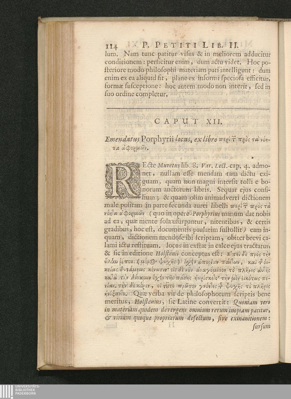 Cap. XII. Emendatus Porphyrii locus, ex libro [...].