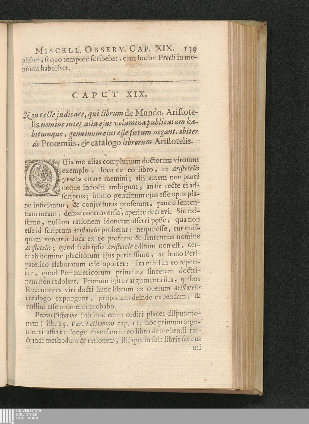 Cap. XVIII. Non recte judicare, qui librum de Mundo, Aristotelis nomine inter aliae[...]