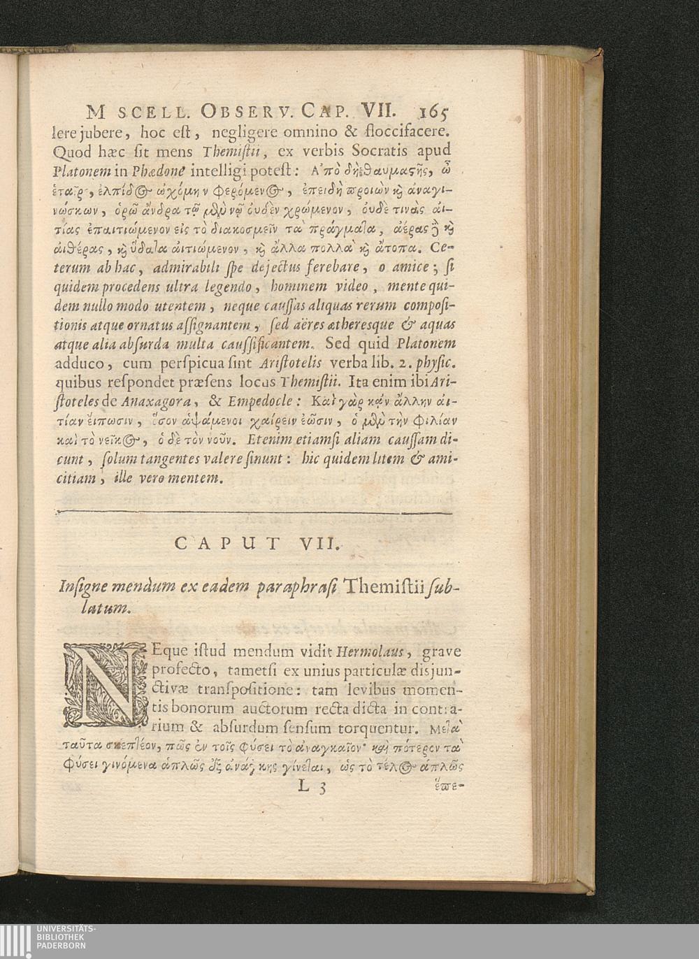 Caput VII. Insigne mendum ex eadem paraphrasi Themistii sublatum.