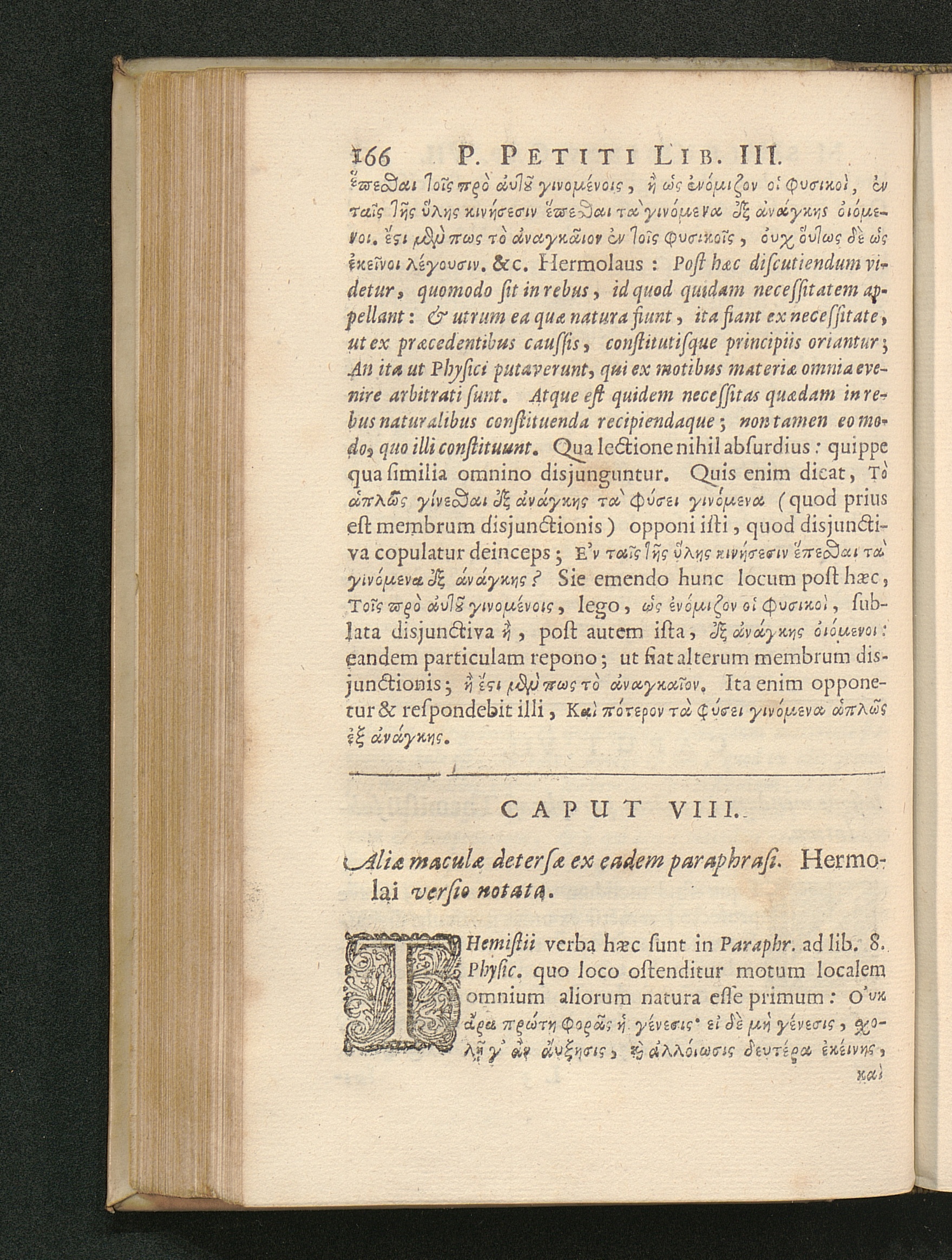 Cap. VIII. Aliae maculae detersae ex eadem paraphrasi. Hermolai versio notata.