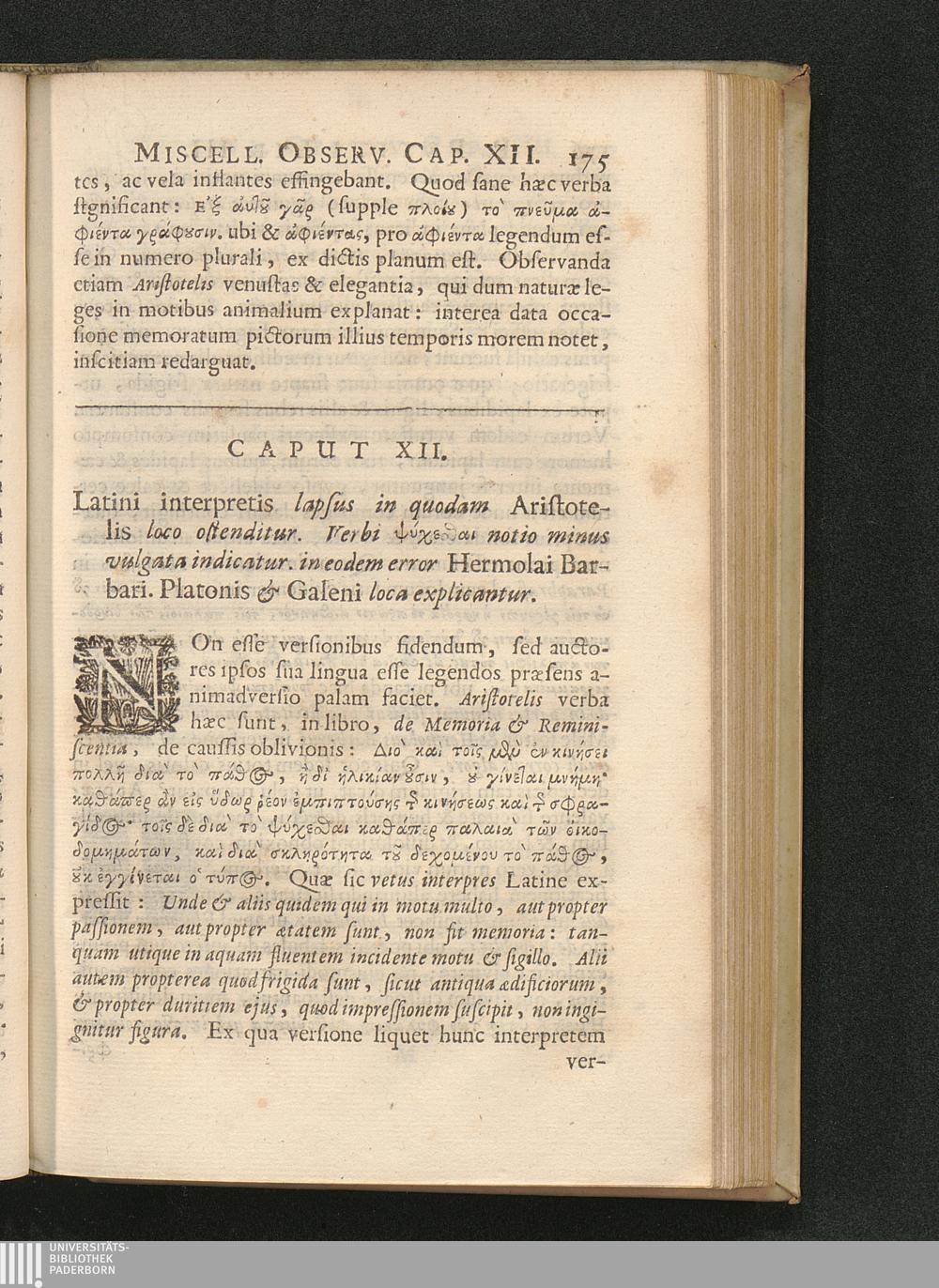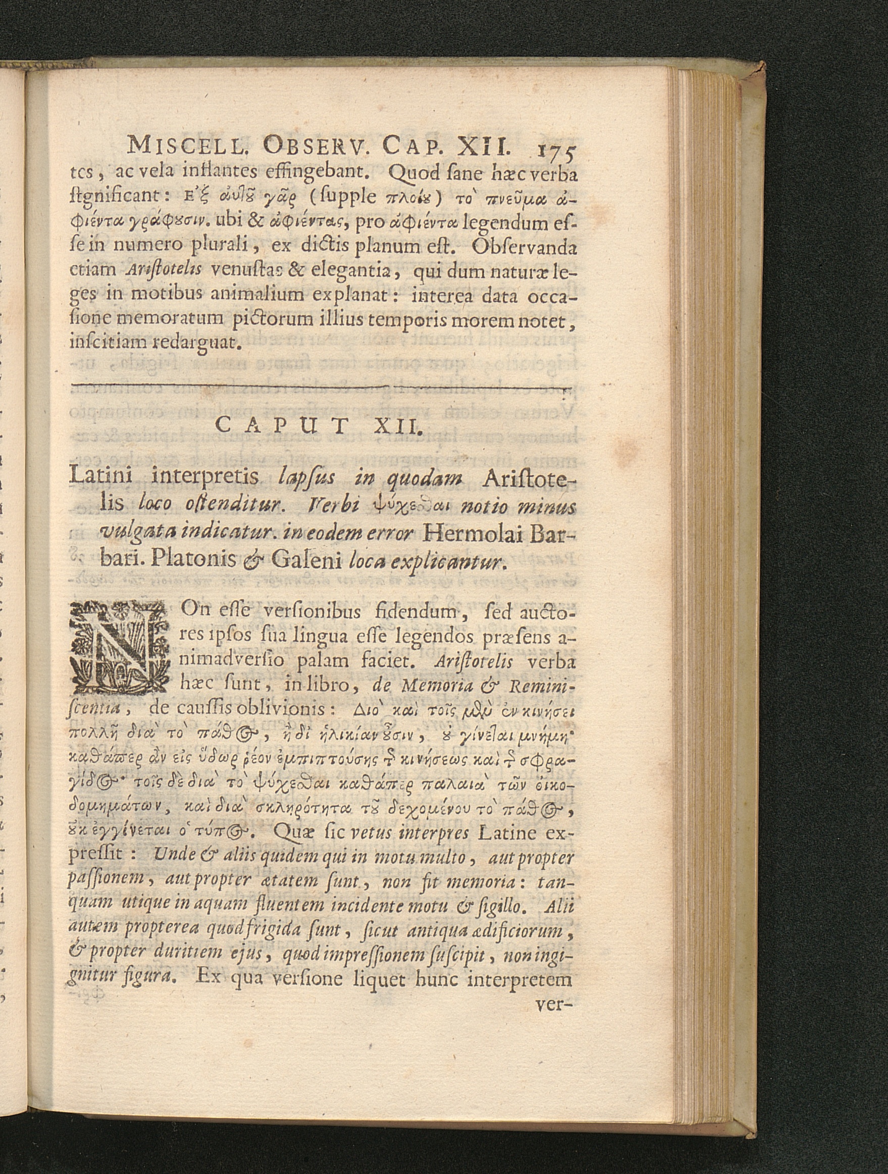 Cap. XII. Latini interpretis lapsus in quodam Aristotelis loco ostenditur. Verbi[...]