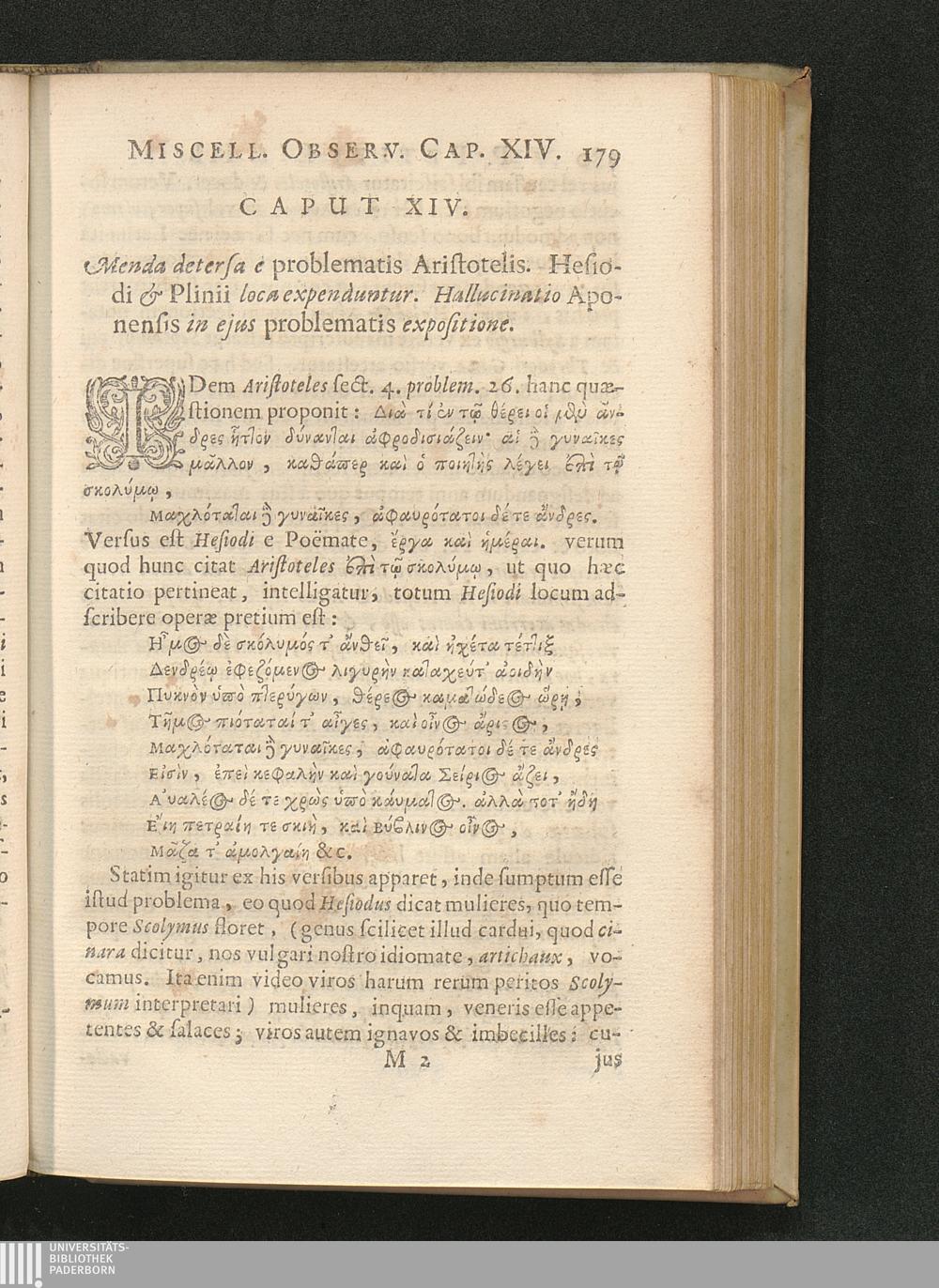 Cap. XIV. Menda detersa e problematis Aristotelis. Hesiodi & Plinii loca expenduntur.[...]