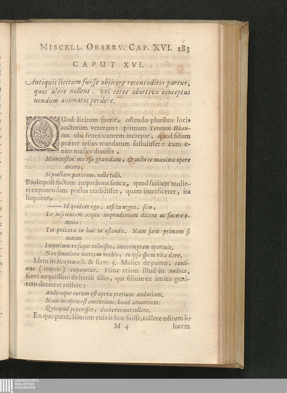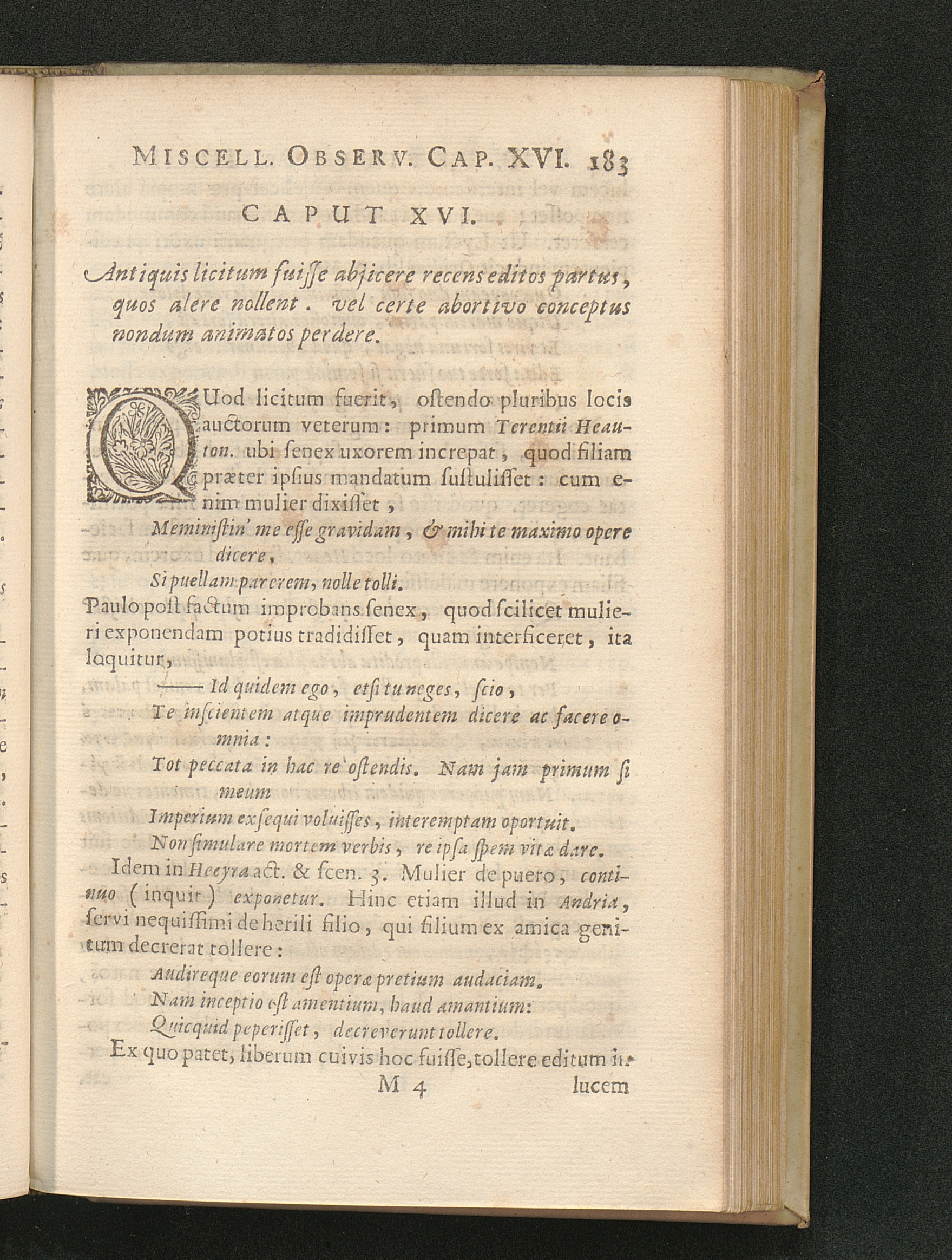 Cap. XVI. Antiquis licitum fuisse abjicere recens editos partus, quos altere nollent.[...]