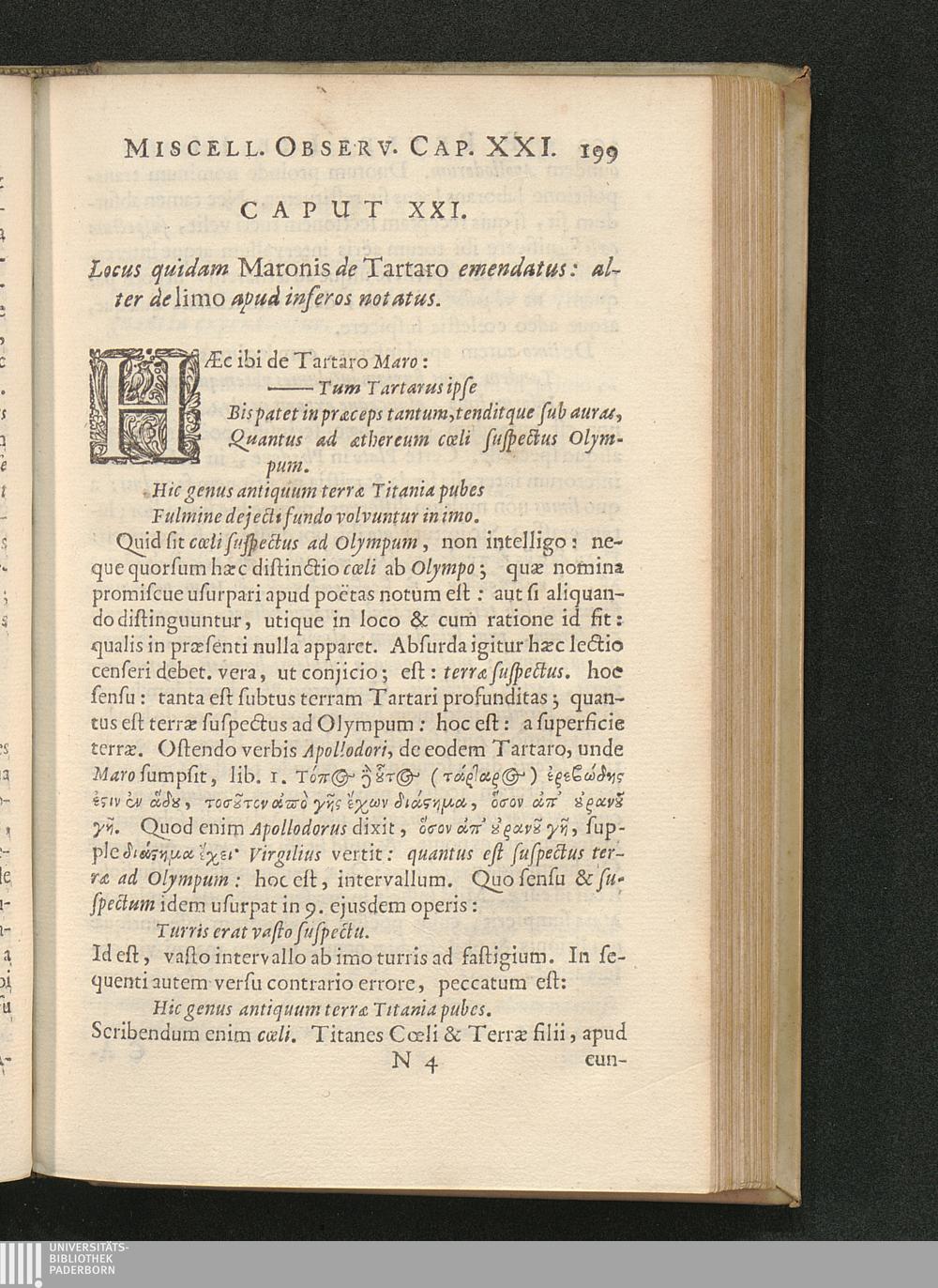 Cap. XXI. Locus quidam Maronis de Tartaro emendatus: alter de limo apud inferos [...]