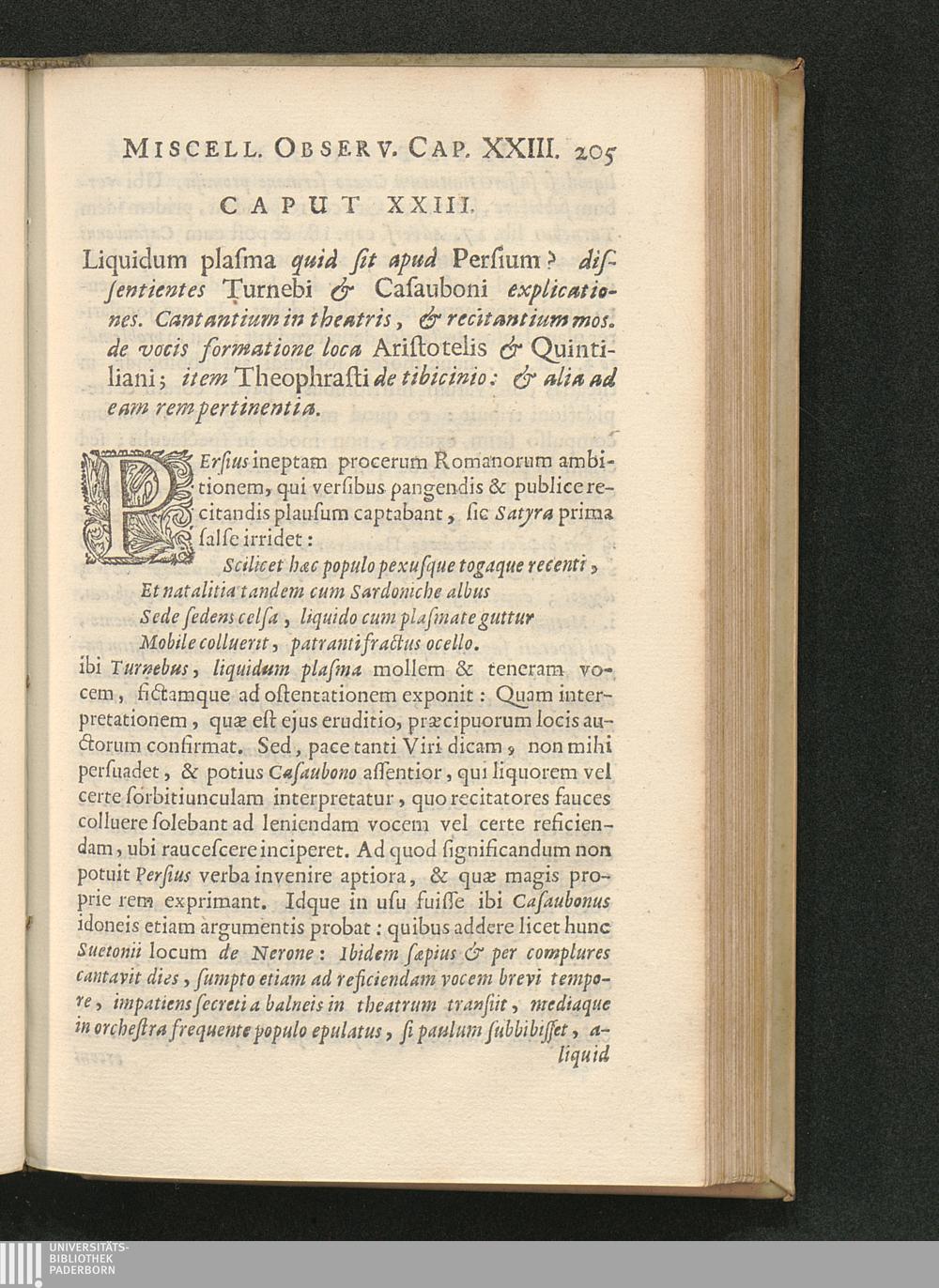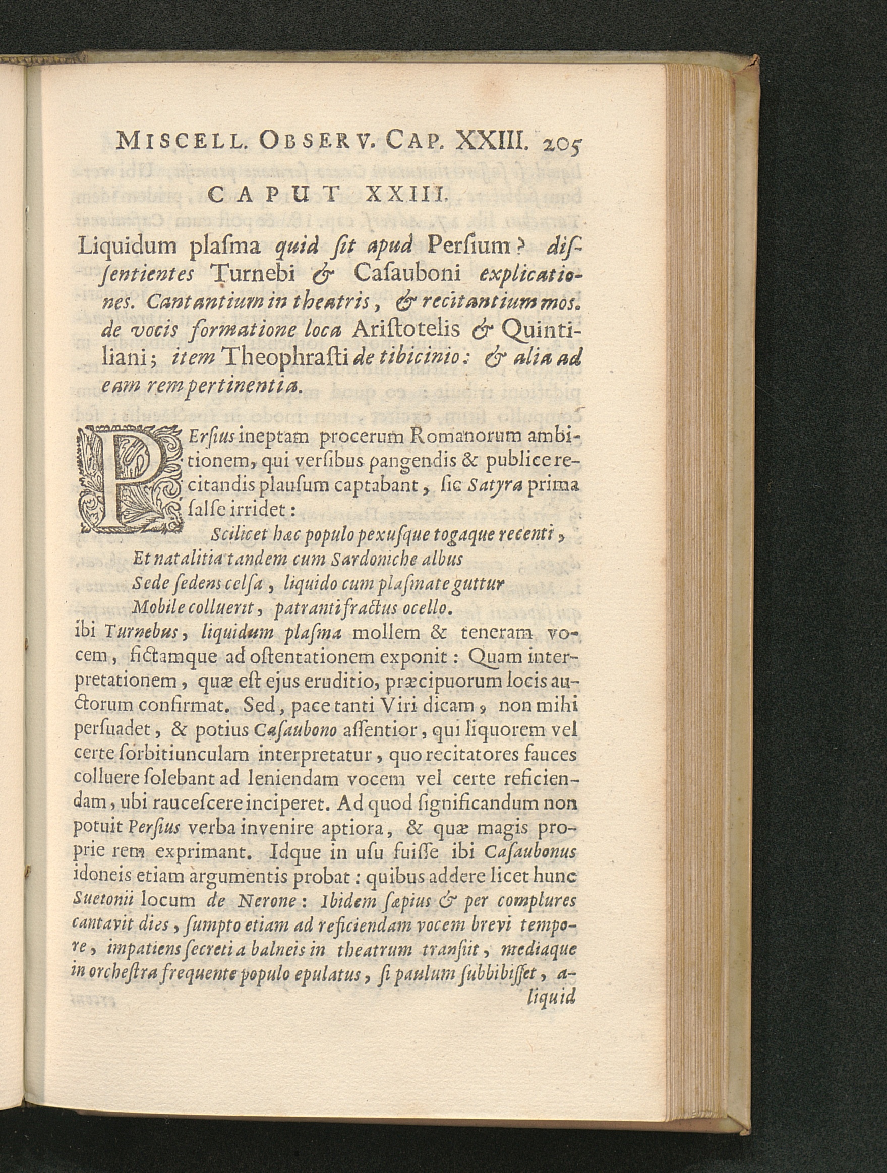 Cap. XXIII. Liquidum plasma quid sit apud Persium? dissentientes Turnebi & Casauboni[...]