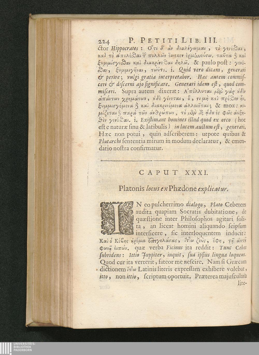 Cap. XXXI. Platonis locus ex Phaedone explicatur.