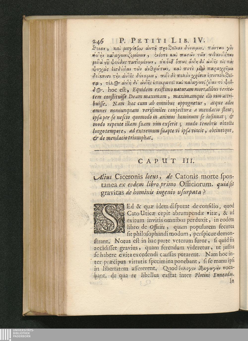 Cap. III. Alius Ciceronis locus, de Catonis morte spontanea ex eodem libro primo[...]