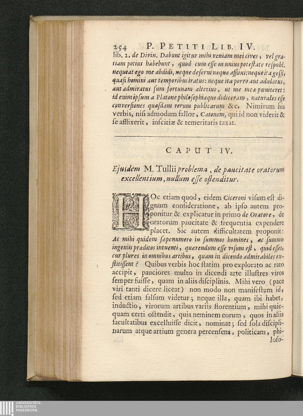 Cap. IV. Ejusdem M. Tullii problema, de paucitate oratorum excellentium, nullum esse[...]