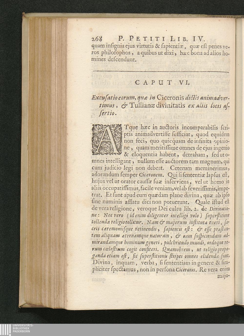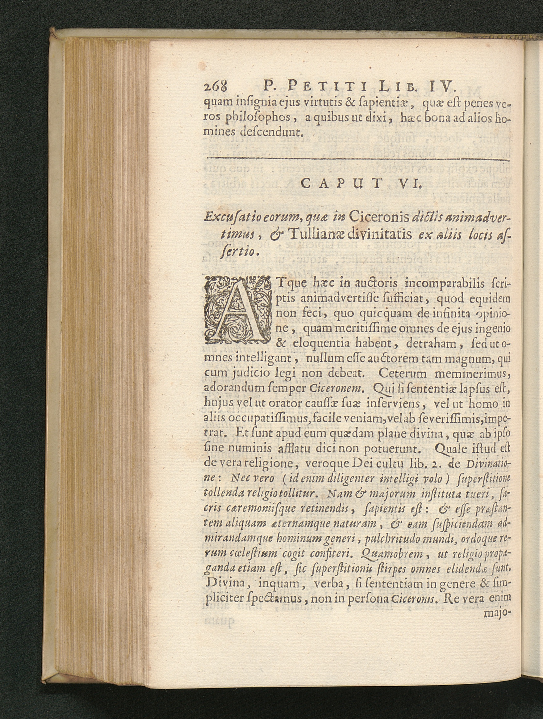 Cap. VI. Excusatio eorum, quae in Ciceronis dictis animadvertimus, & Tullianae divinitatis[...]