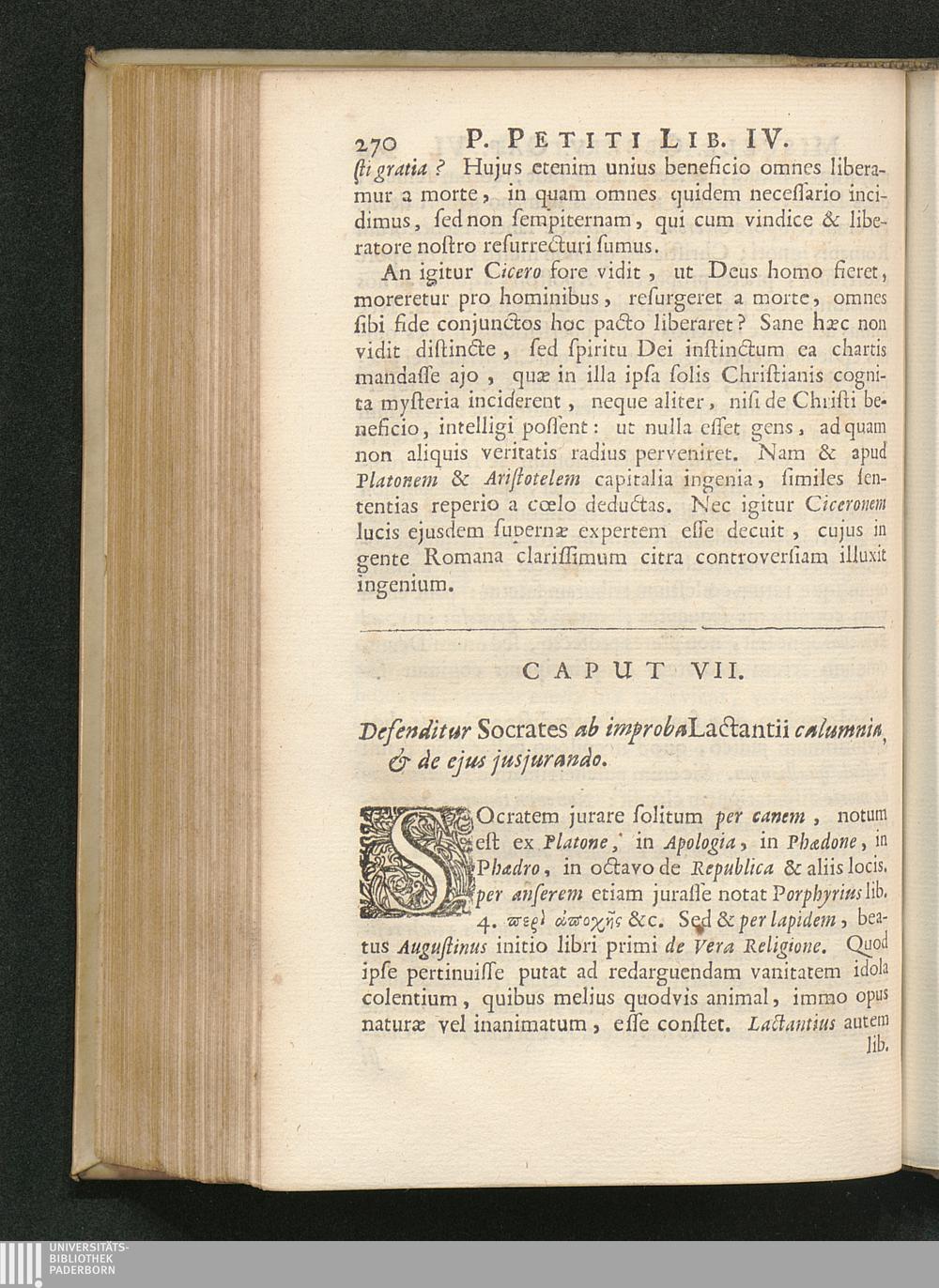 Cap. VII. Defenditur Socrates ab improba Lactantii calumnia, & ejus jusjurando.