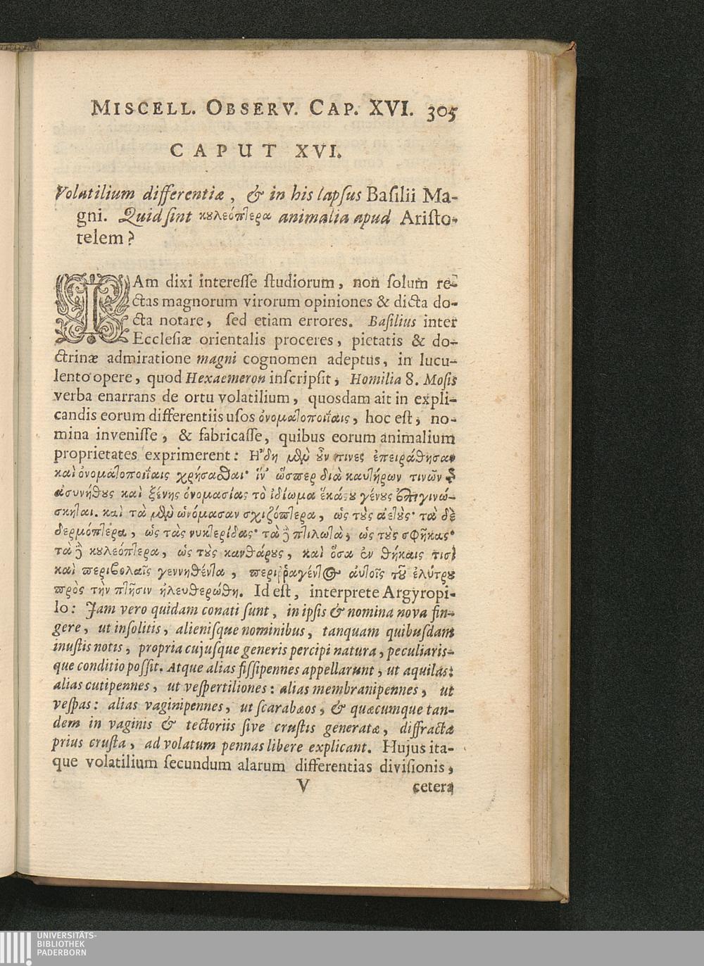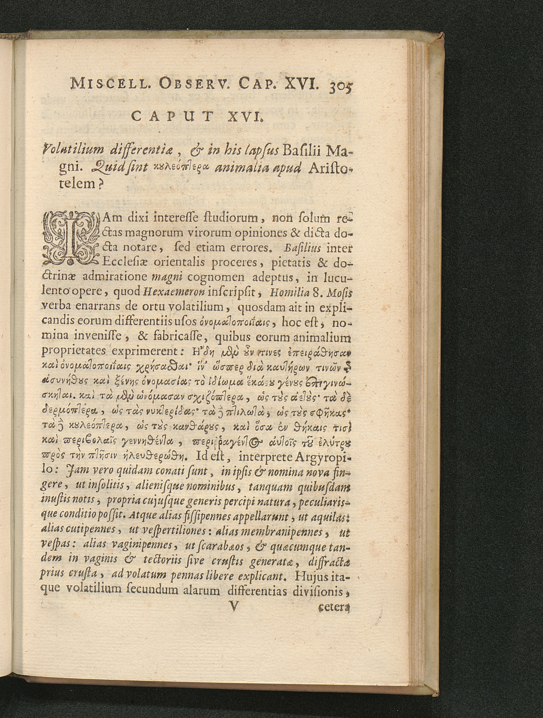 Cap. XVI. Volatilium differentiae, & in his lapsus Basilii Magni. Quid sint [...][...]