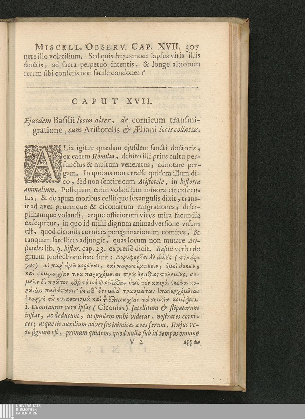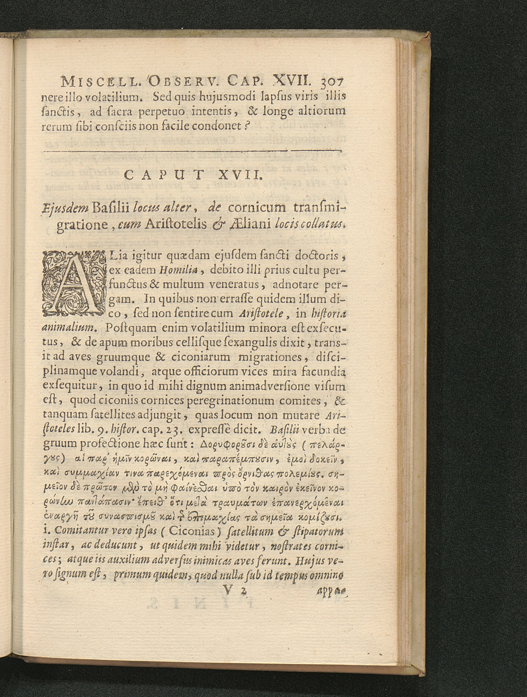Cap. XVII. Ejusdem Basilii locus alter de cornicum Aeliani transmigratione cum Aristotelis[...]
