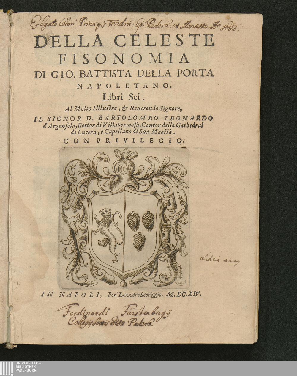 Della Celeste Fisonomia : Libri Sei / Di Gio. Battista Della Porta Napoletano