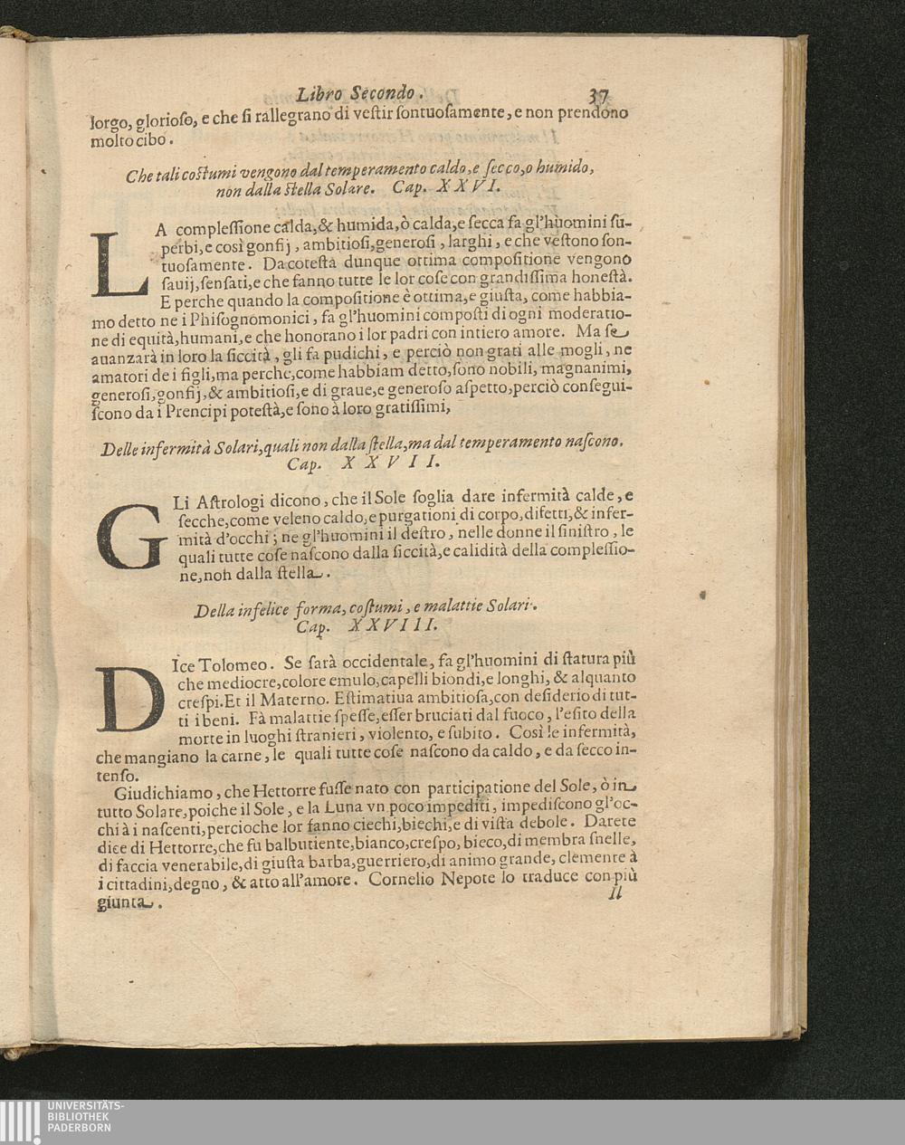 Della infelice forma, costumi, e malattie Solari. Cap. 28.