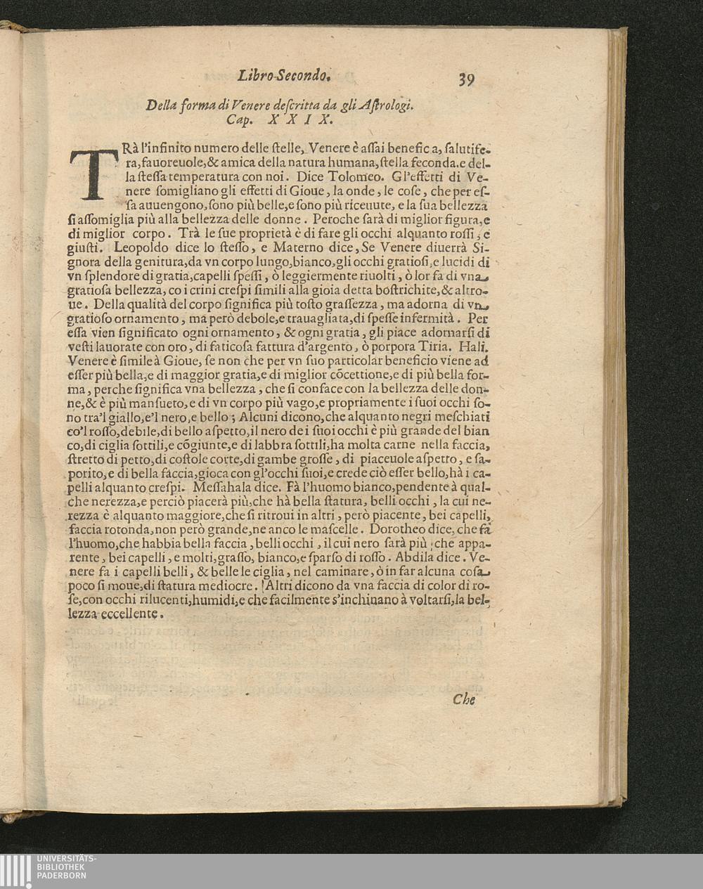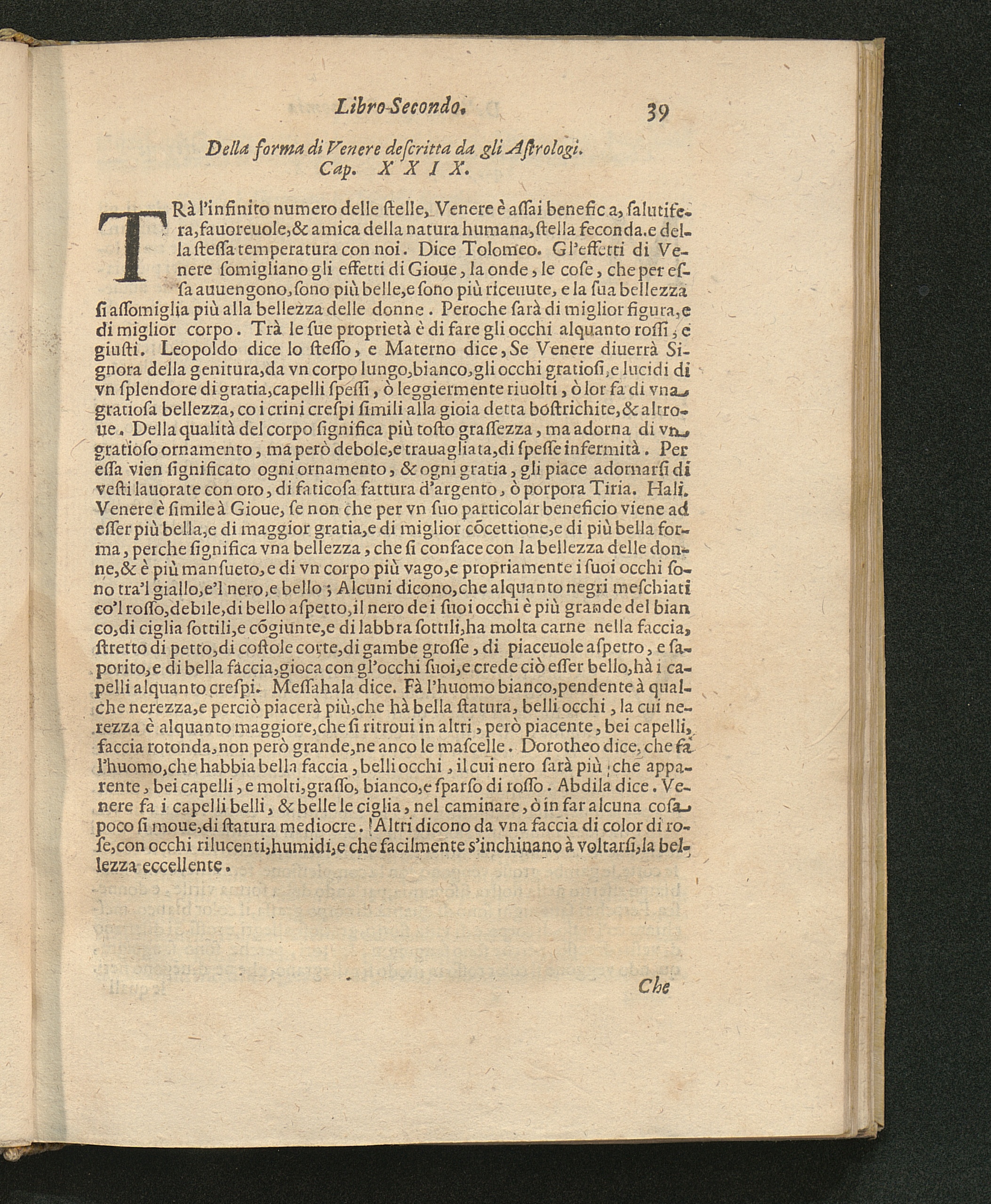 Della forma di Venere descritta da gli Astrologi. Cap. 29.
