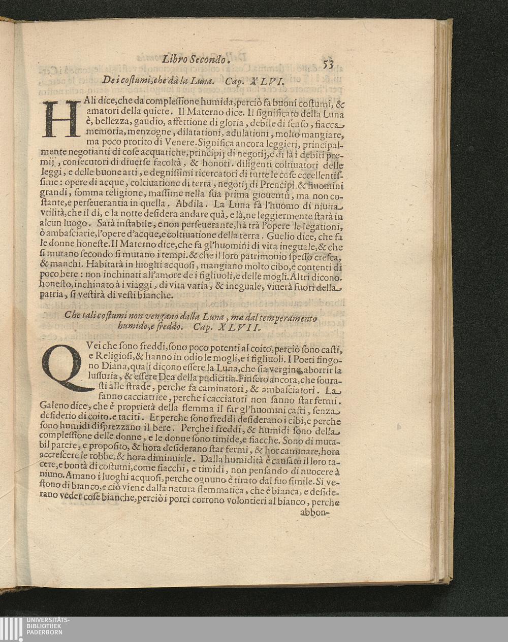 Che tali costumi non vengono dalla Luna, ma dal temperamento humido, e freddo. Cap.[...]