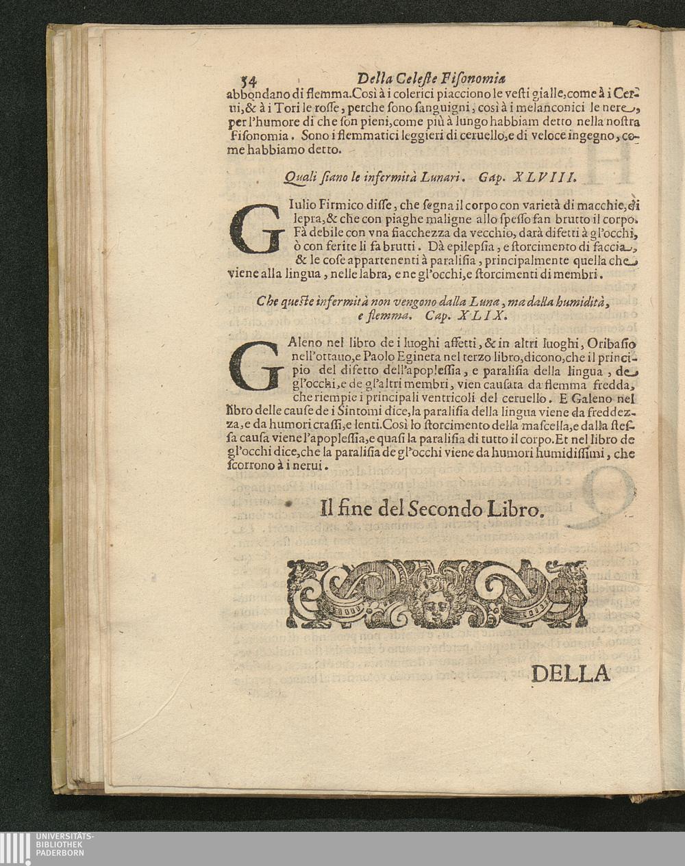 Che queste infermità non vengono dalla Luna, ma dall'humidità, e flemma. Cap. 49[...]