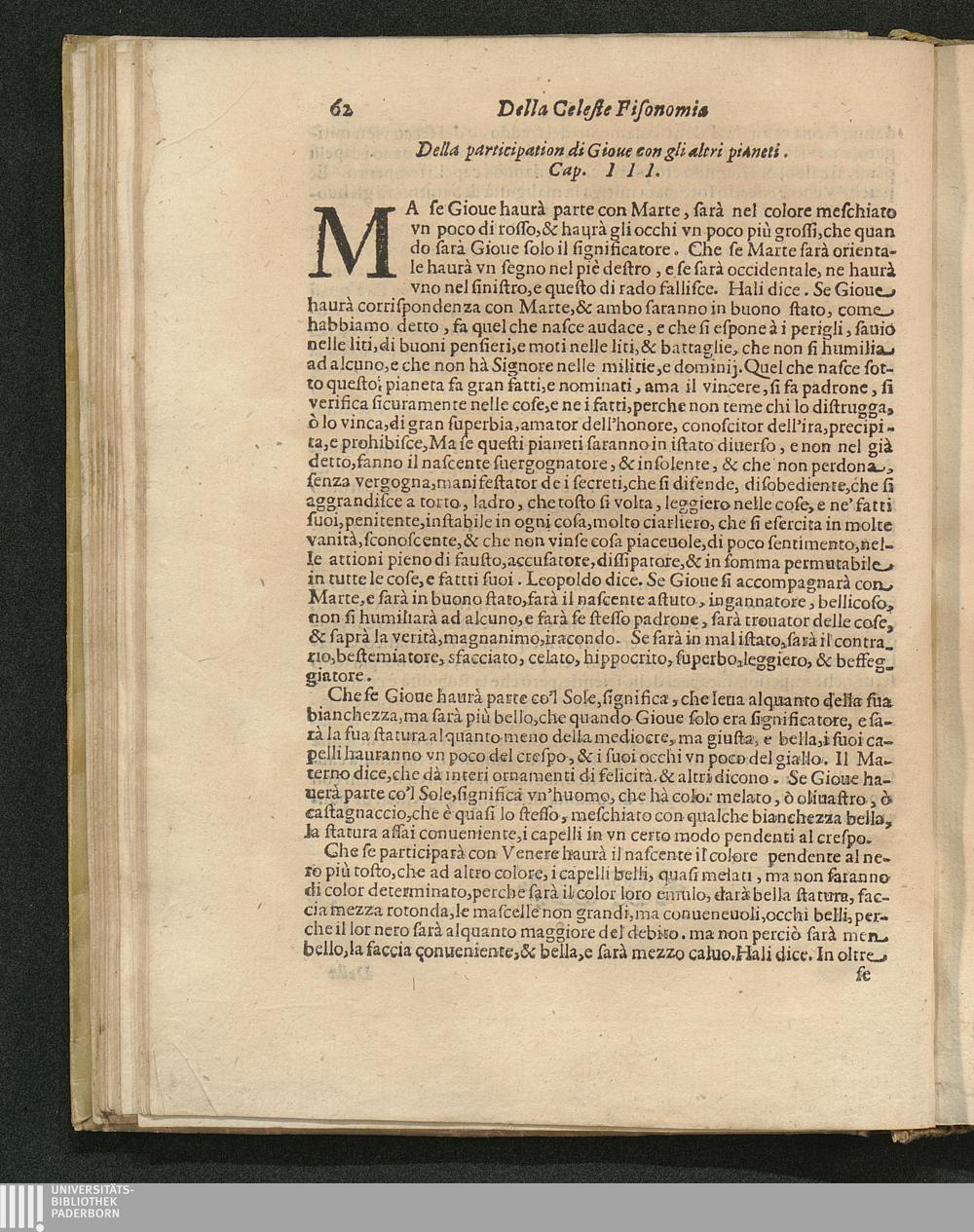 Della perticipation di Gioue con glia altri pianeti. Cap. 3.