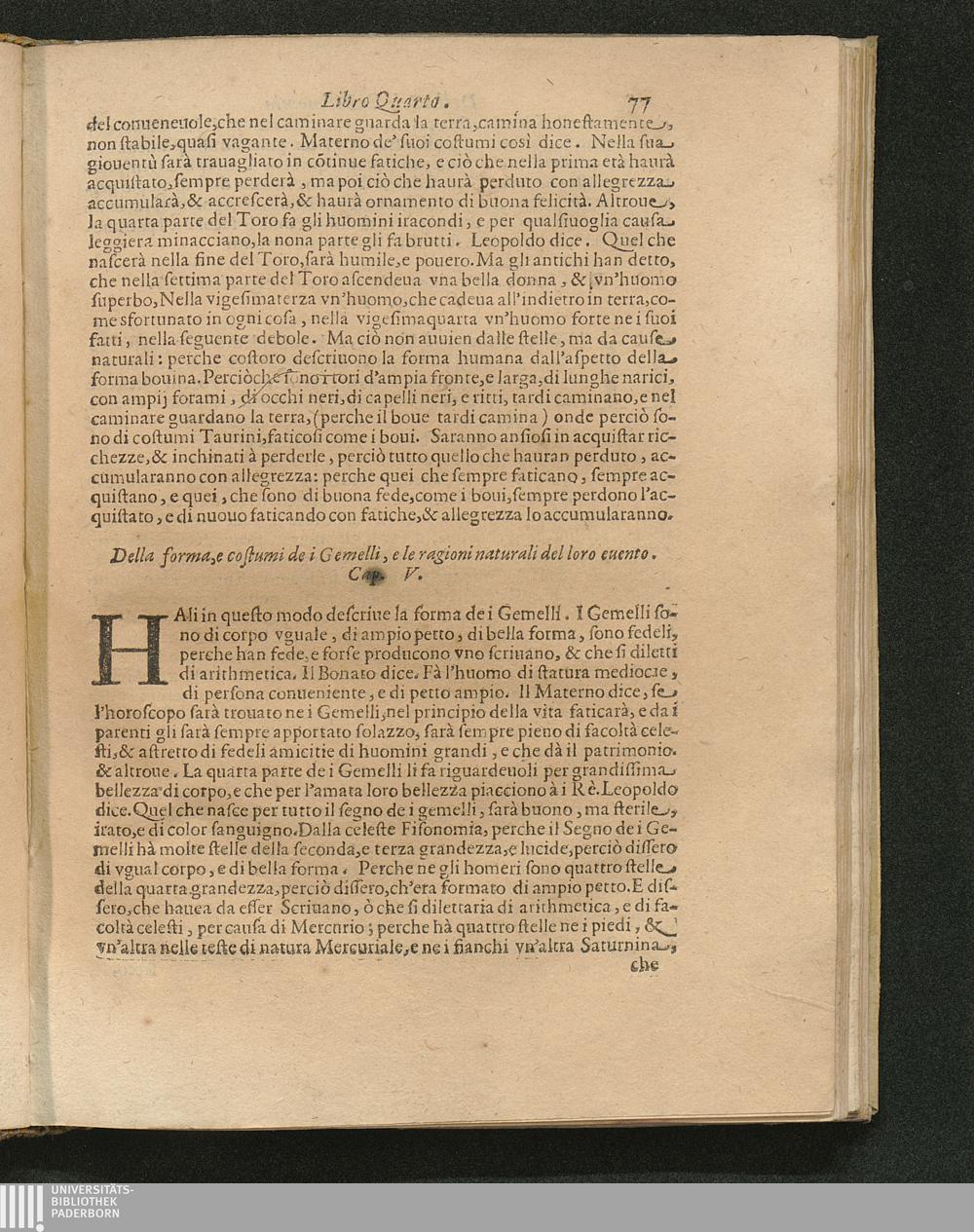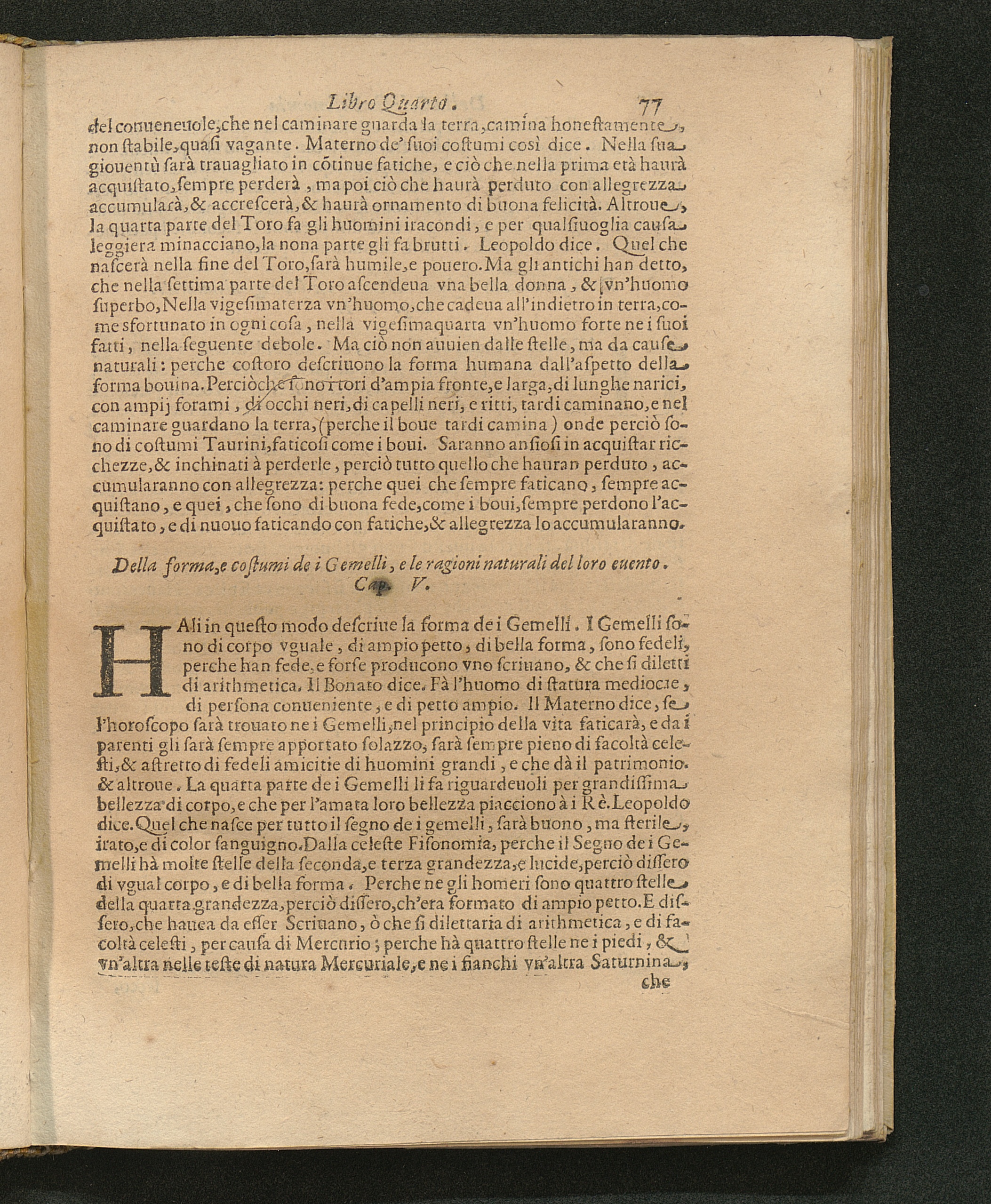 Della forma, e costumi de i Gemelli, e le ragioni naturali del loro euento. Cap.[...]