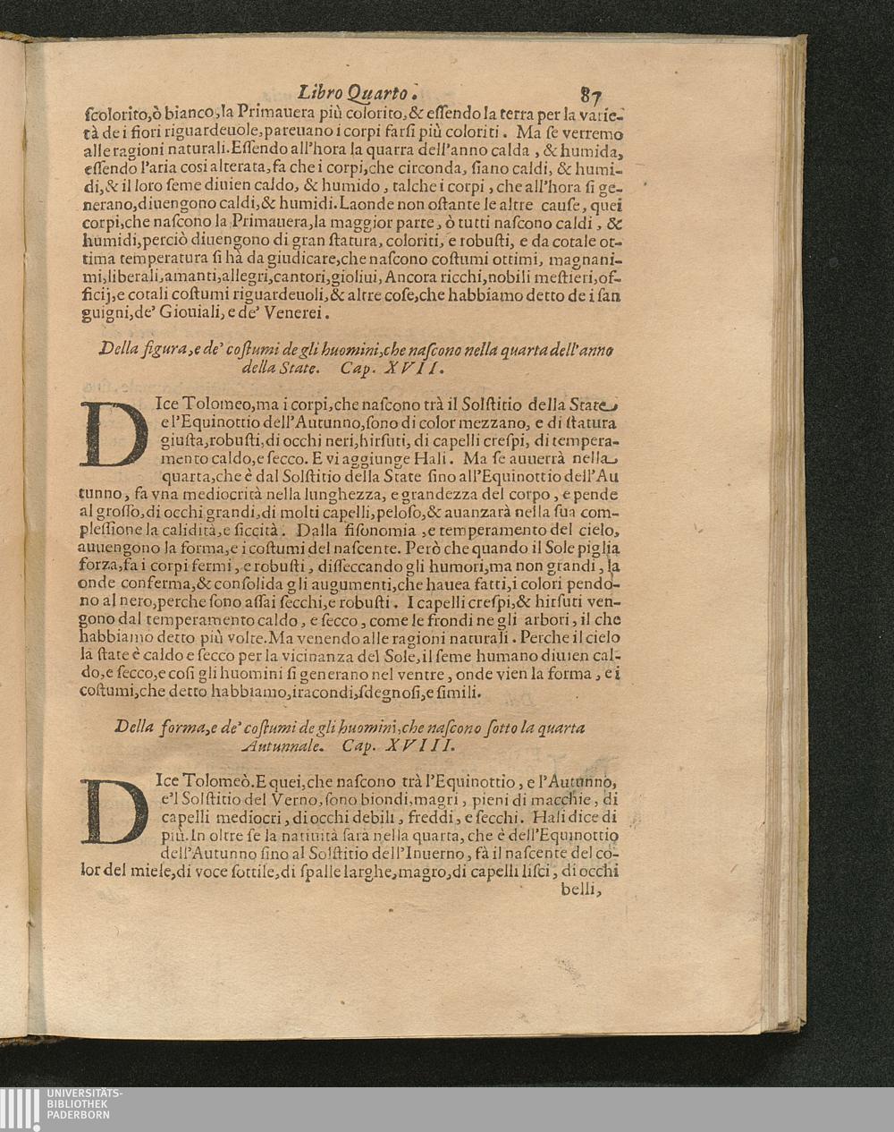 Della forma, e de' costumi de gli huomini, che nascono sotto la quarta Autunale.[...]