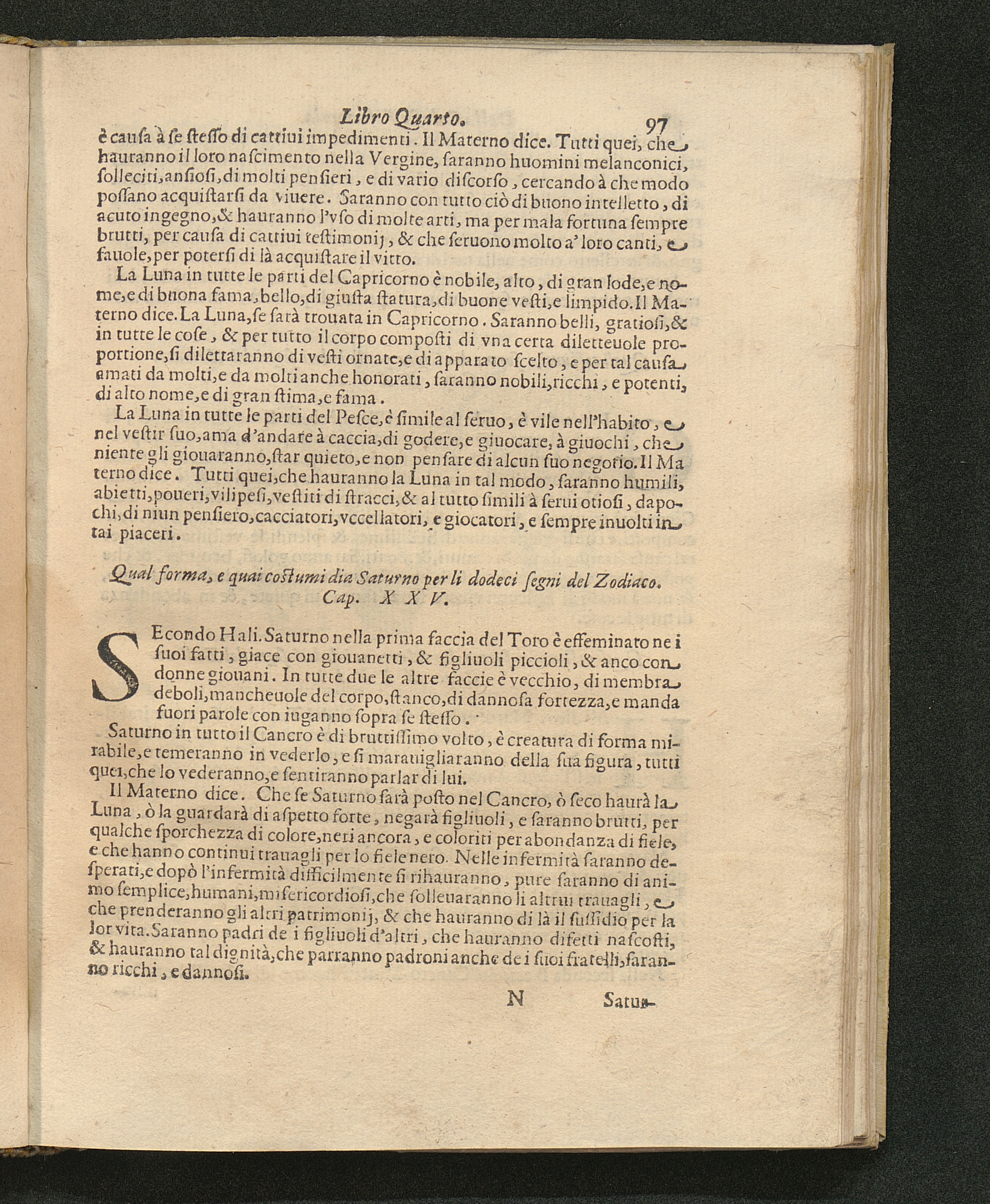 Qual forma, e quai costumi dia Saturno per li dodeci segni del Zodiaco. Cap. 25.