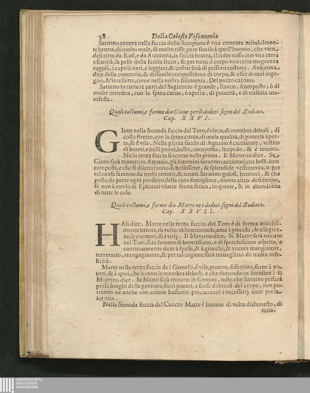Quali costumi, e forme dia Marte ne i dodeci segni del Zodiaco. Cap. 27.