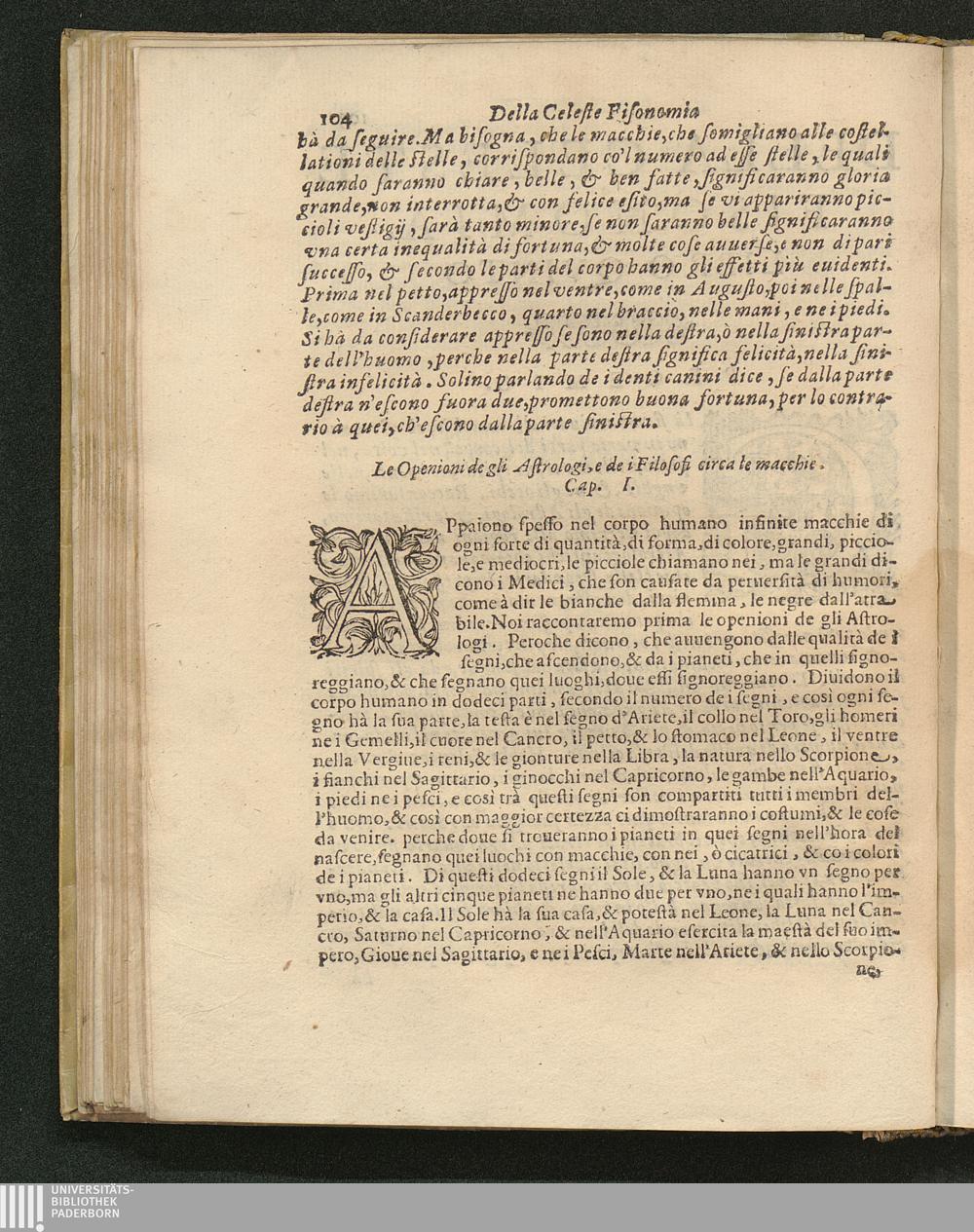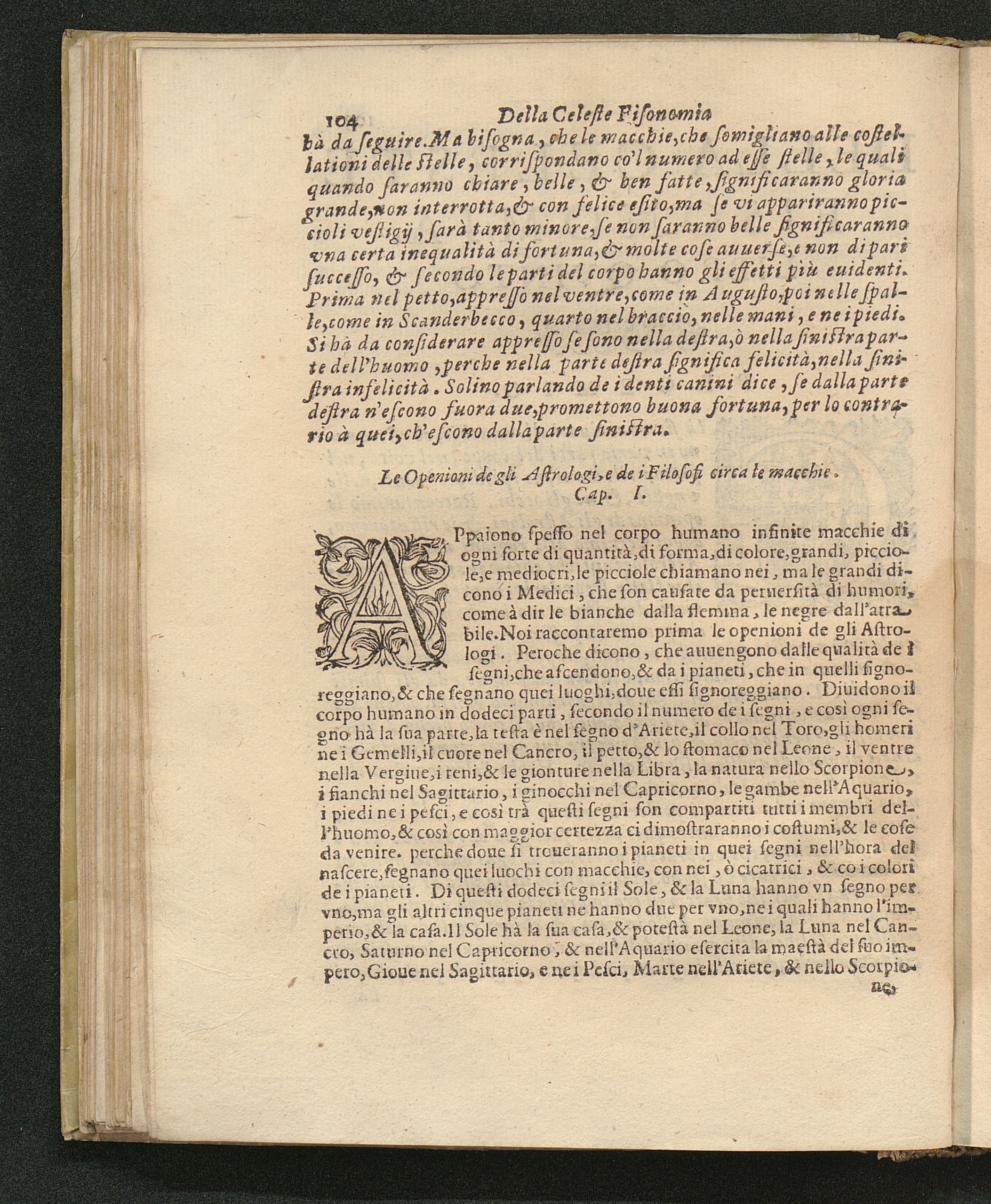 L'Openioni de gli Astrologi, e de' Filosofi circa le macchie. Cap. 1.