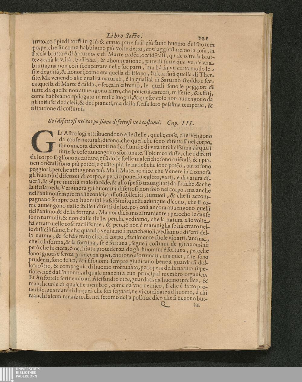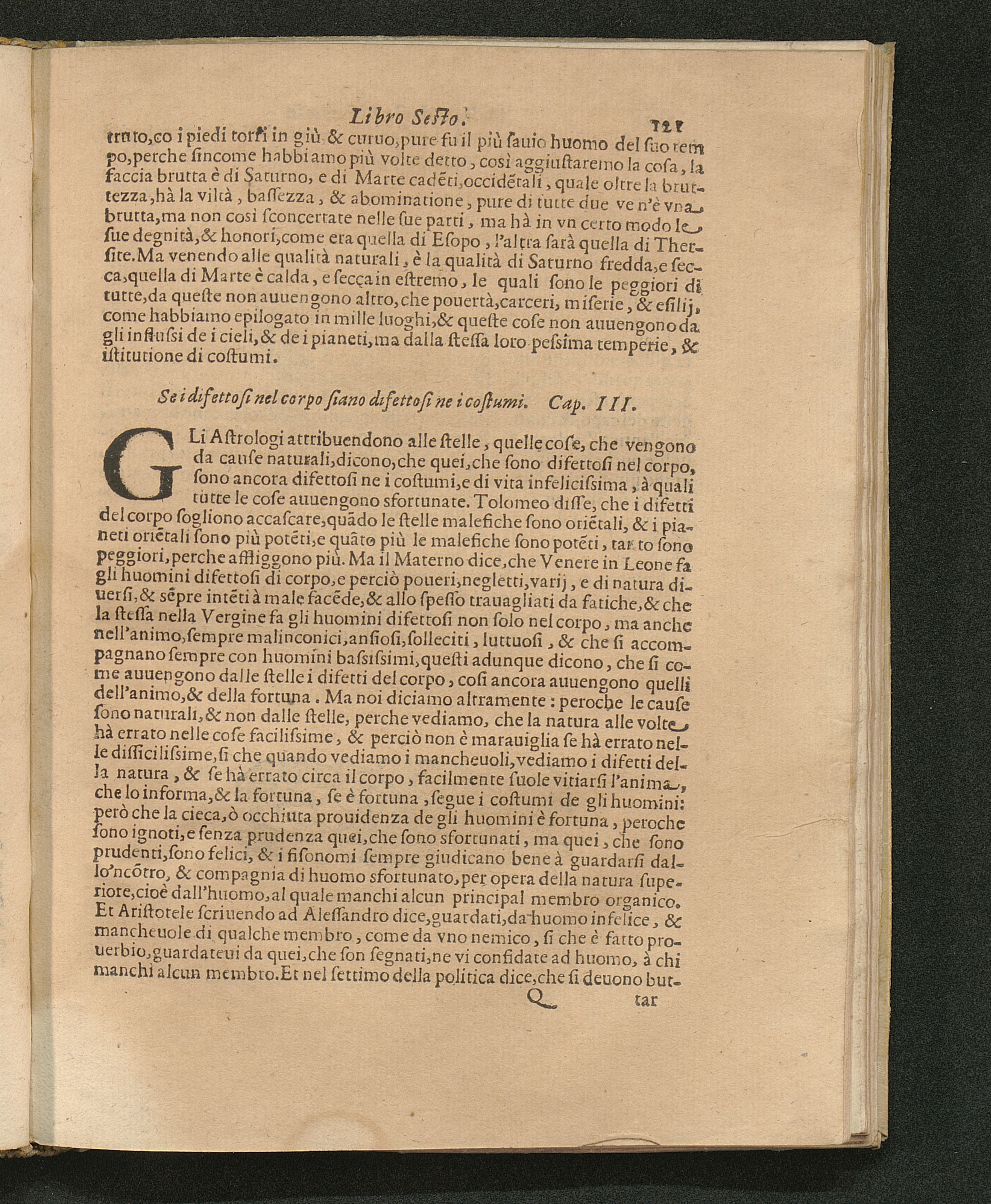 Se i difettosi nel corpo siano difettosi ne i costumi. Cap. 3.