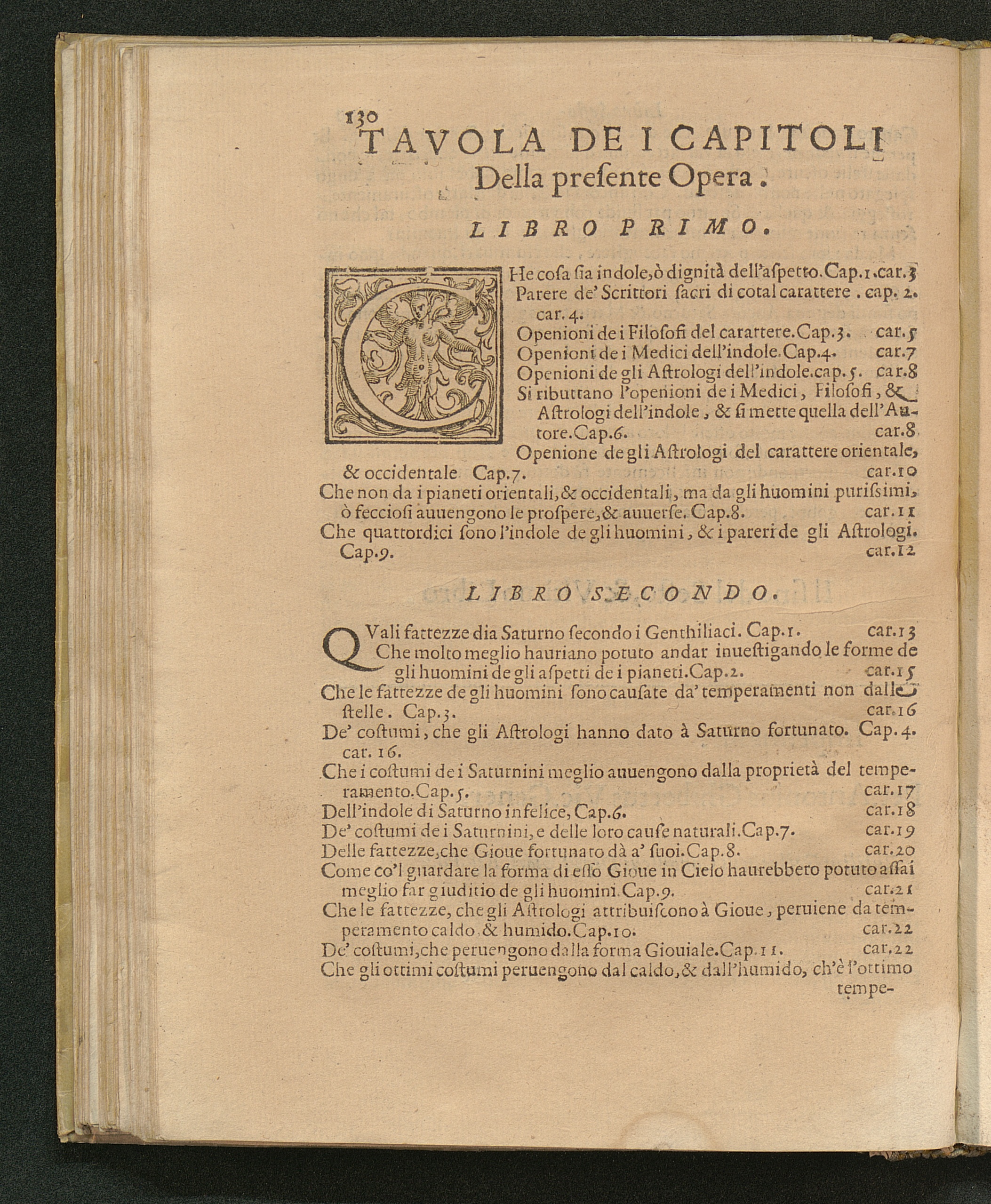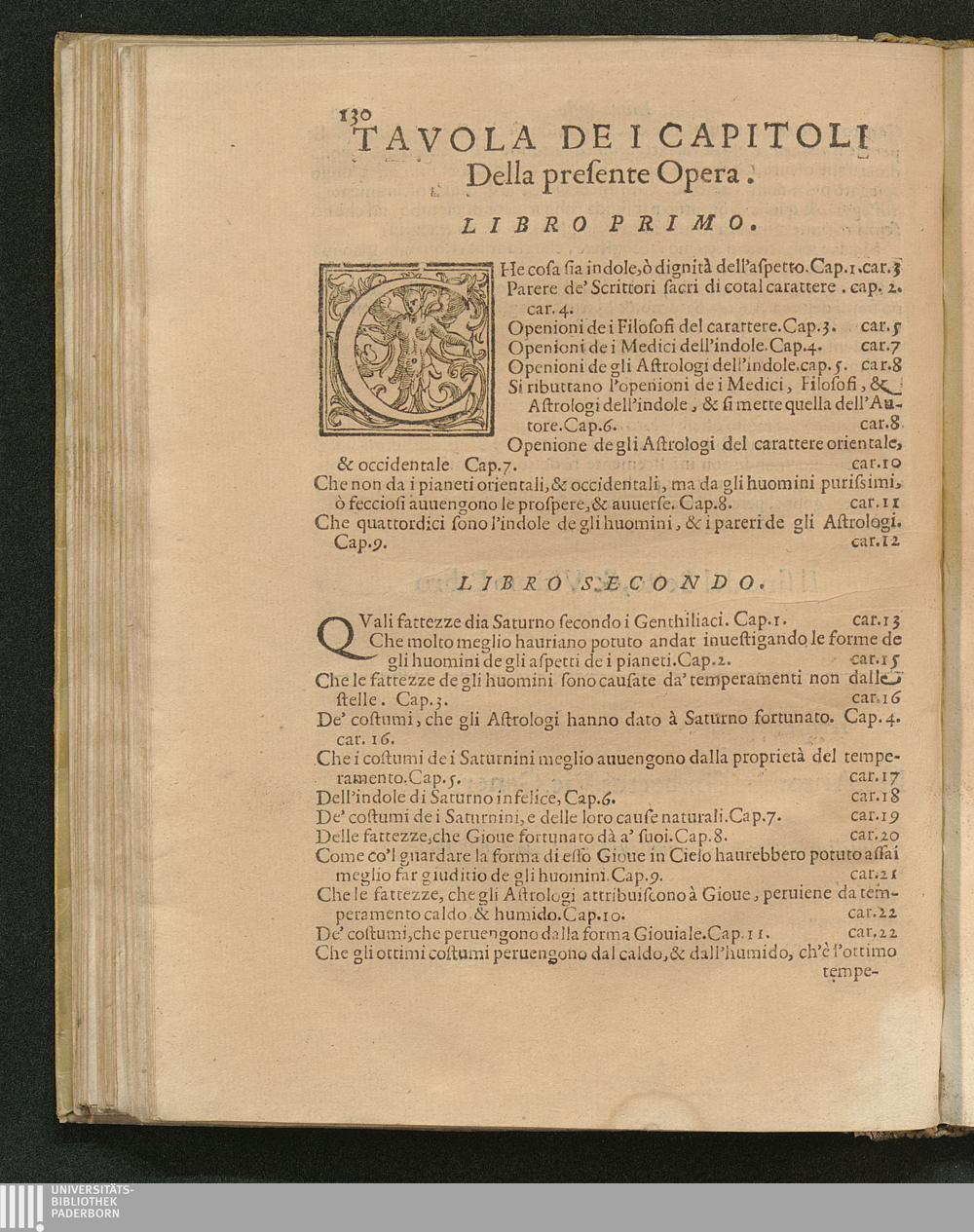 Tavola Dei Capitoli Della presente Opera.