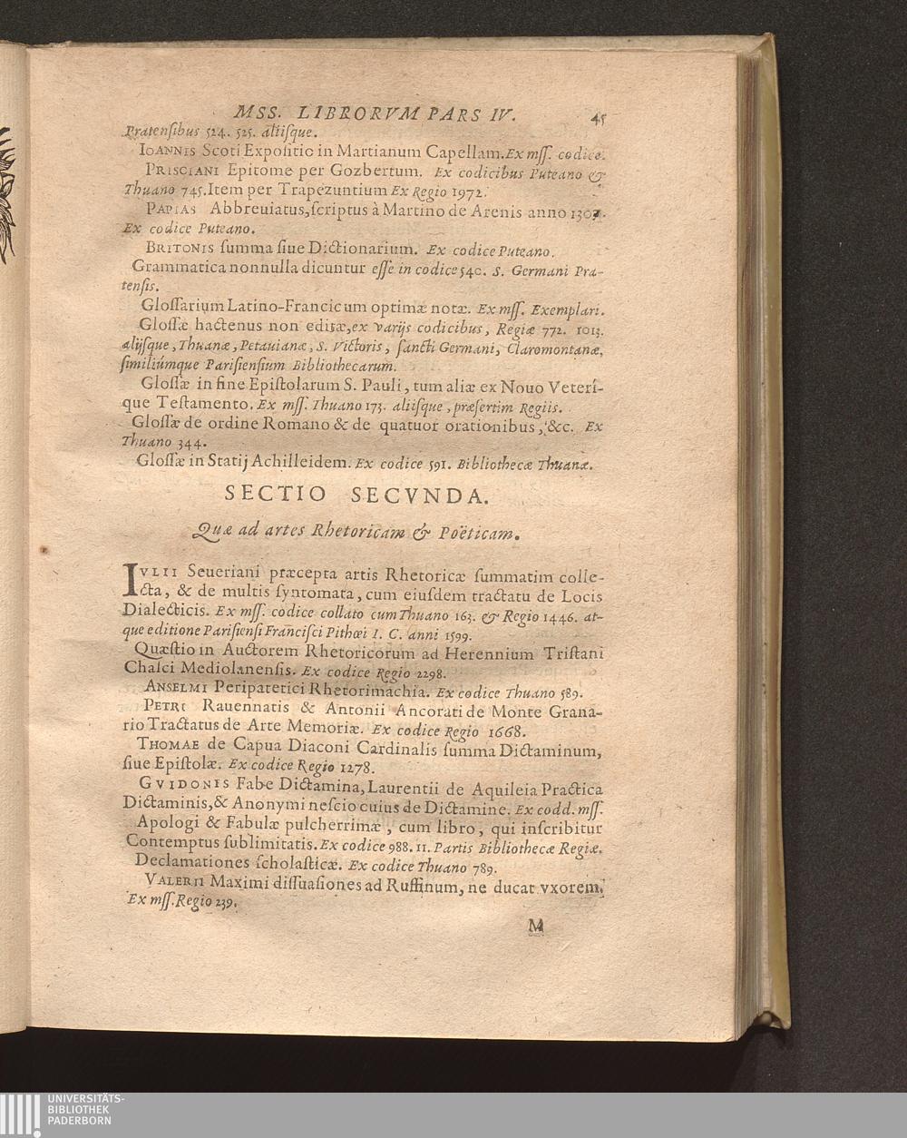 Philippi Labbei Bitvrici Societatis Iesv Presbyteri, Nova Bibliotheca Mss. Librorvm, Sive Specimen Antiqvarvm Lectionvm Latinarvm Et Græcarvm : In quatuor partes tributarum ; Cvm Coronide Dvplici, Poetica Et Libraria, Ac Supplementis decem