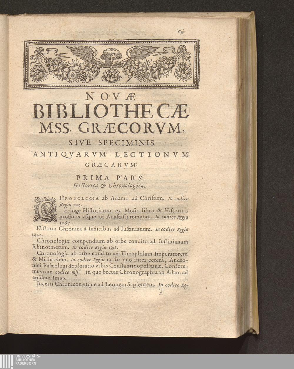 Philippi Labbei Bitvrici Societatis Iesv Presbyteri, Nova Bibliotheca Mss. Librorvm, Sive Specimen Antiqvarvm Lectionvm Latinarvm Et Græcarvm : In quatuor partes tributarum ; Cvm Coronide Dvplici, Poetica Et Libraria, Ac Supplementis decem