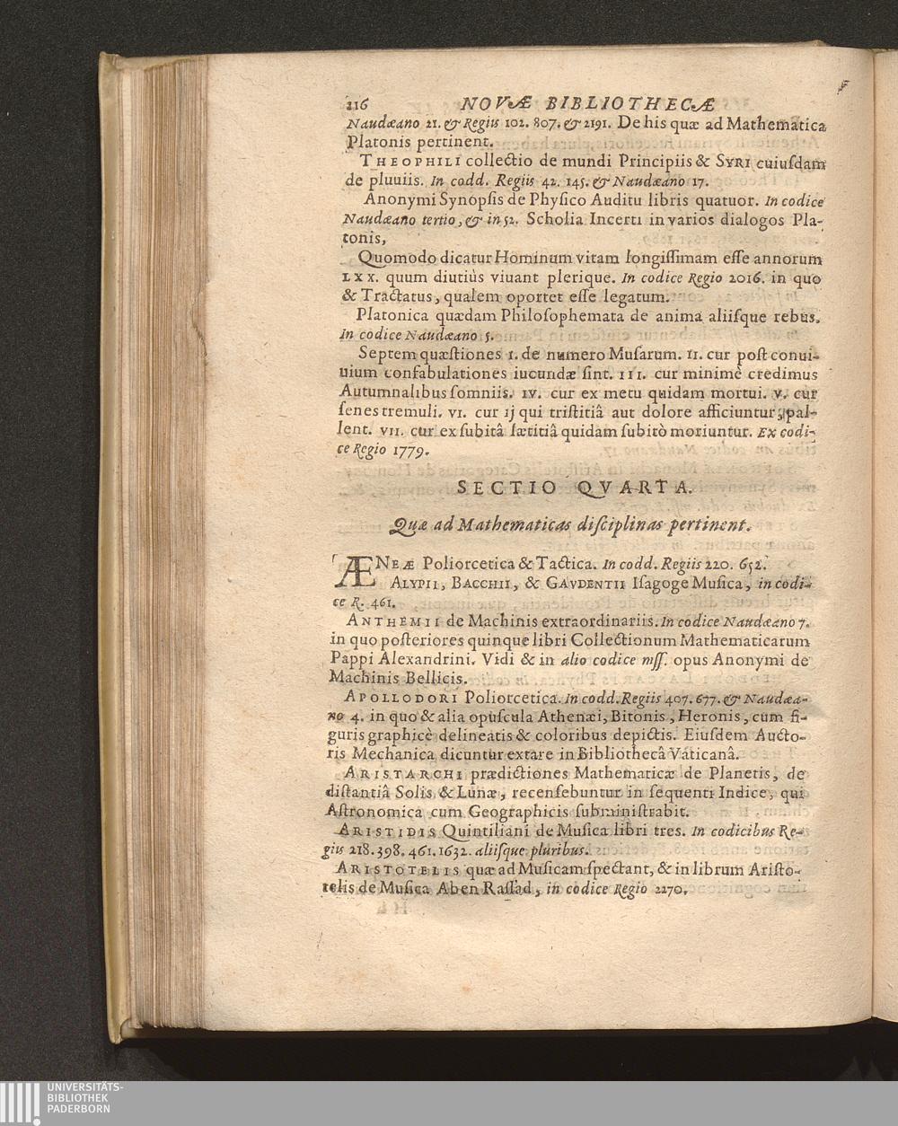 Philippi Labbei Bitvrici Societatis Iesv Presbyteri, Nova Bibliotheca Mss. Librorvm, Sive Specimen Antiqvarvm Lectionvm Latinarvm Et Græcarvm : In quatuor partes tributarum ; Cvm Coronide Dvplici, Poetica Et Libraria, Ac Supplementis decem