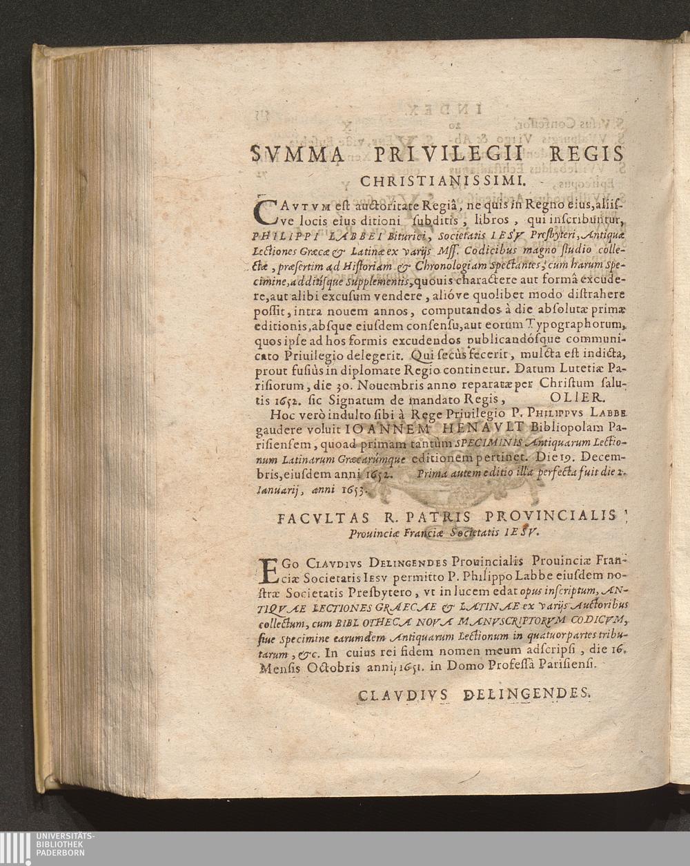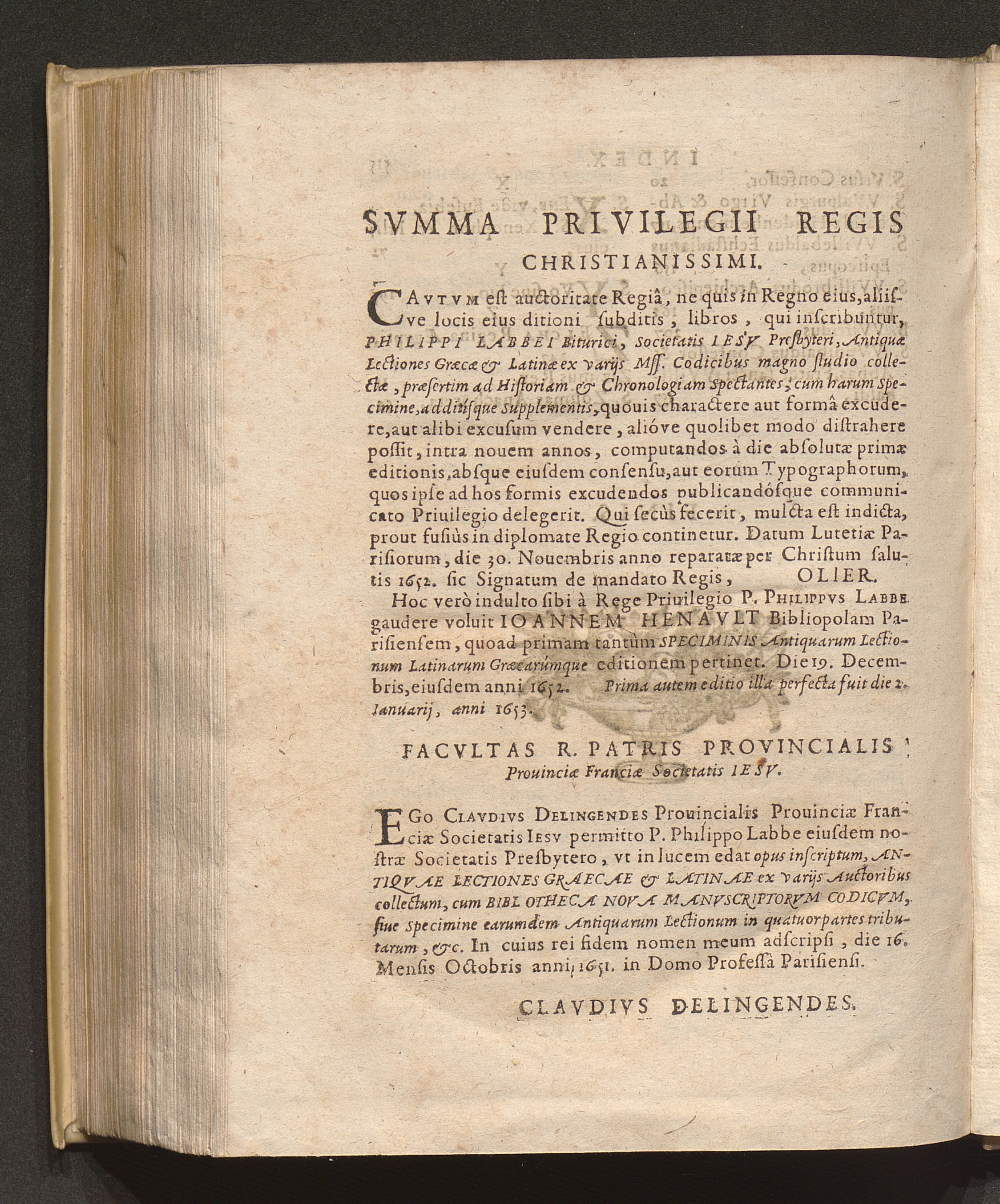 Philippi Labbei Bitvrici Societatis Iesv Presbyteri, Nova Bibliotheca Mss. Librorvm, Sive Specimen Antiqvarvm Lectionvm Latinarvm Et Græcarvm : In quatuor partes tributarum ; Cvm Coronide Dvplici, Poetica Et Libraria, Ac Supplementis decem