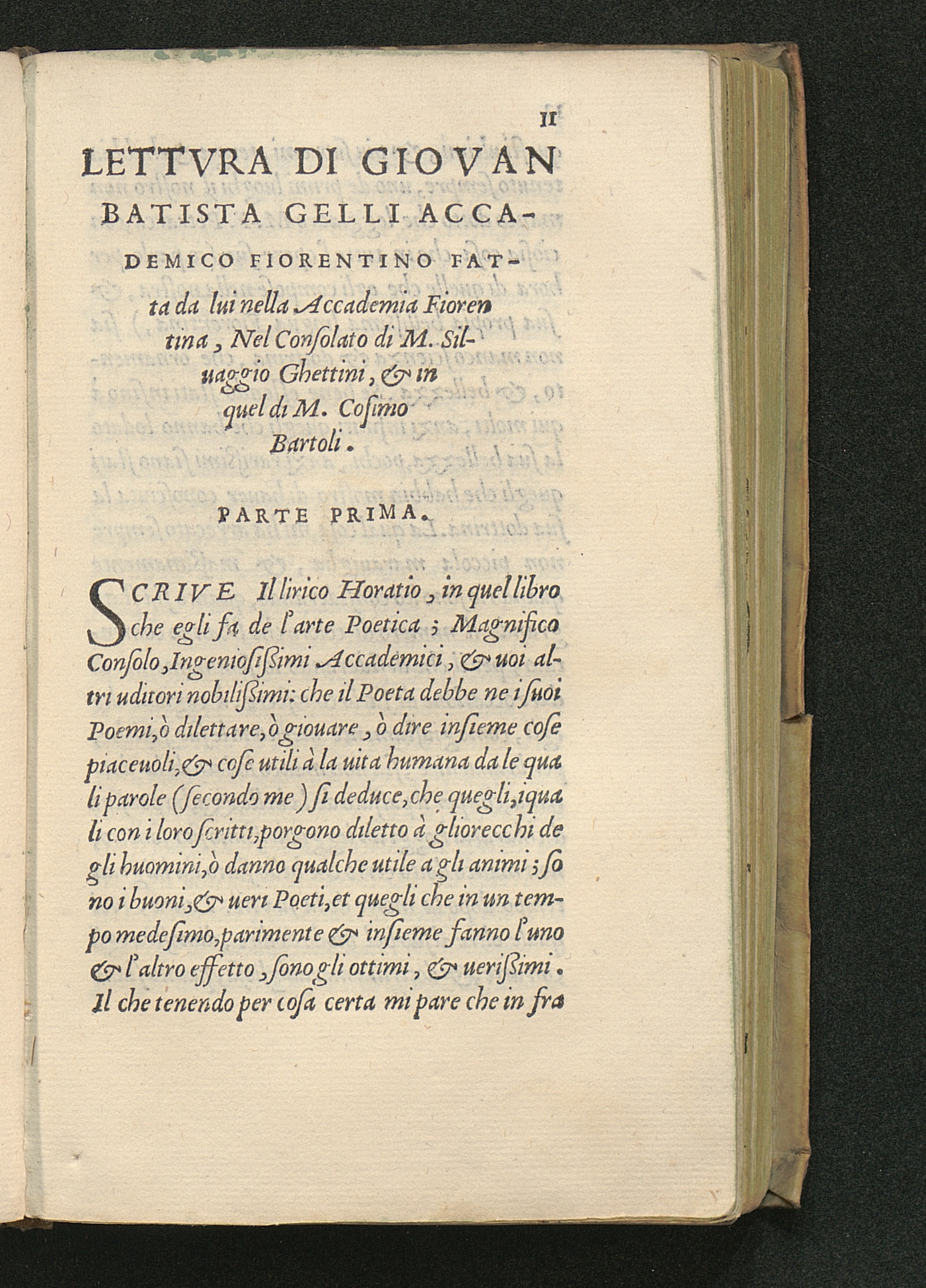 Lettvra Di Giovanbatista Gelli Accademico Fiorentino Fatta da lui nella Accademia Fiorentina, Nel Consolato di M. Siluaggio Ghettini, & in quel di M. Cosimo Bartoli.
