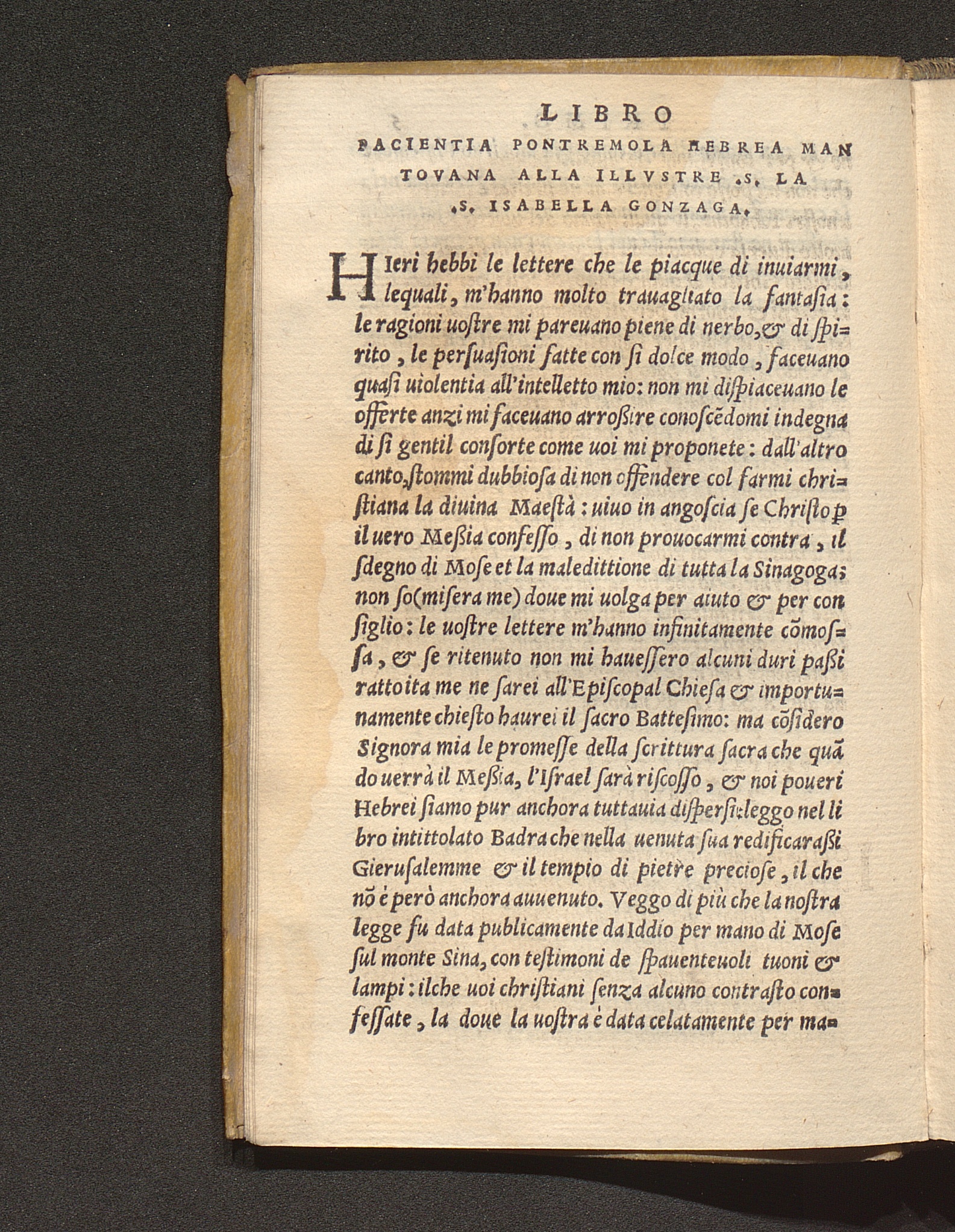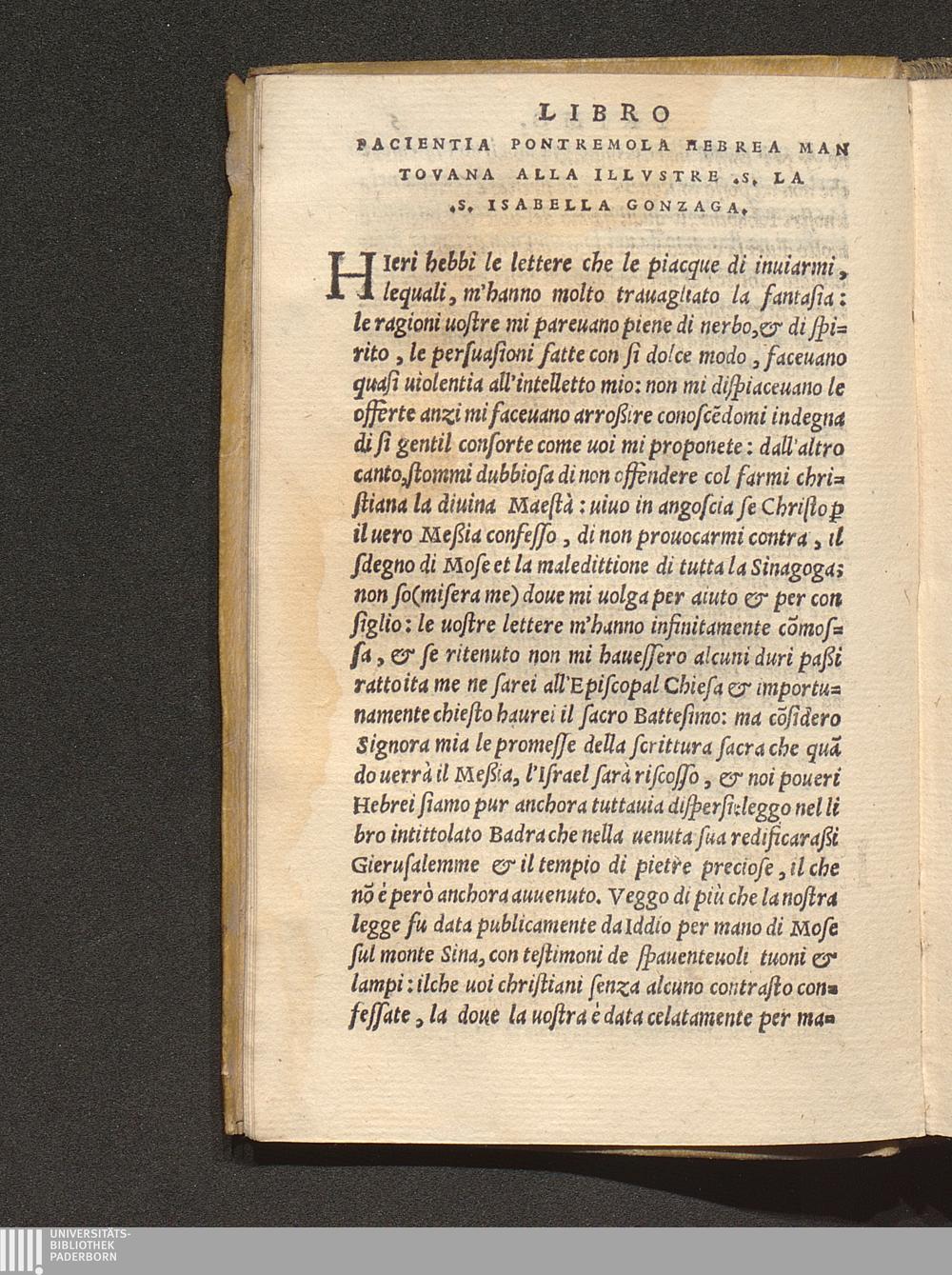 Pacientia Pontremola Hebrea Mantovana Alla Illvstre .S. La .S. Isabella Gonzaga.