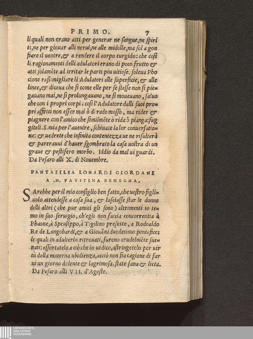 Pantasilea Lonardi Giordani A M. Favstina Benzona.