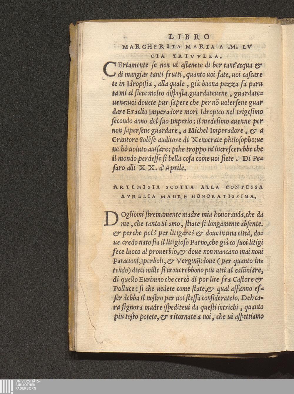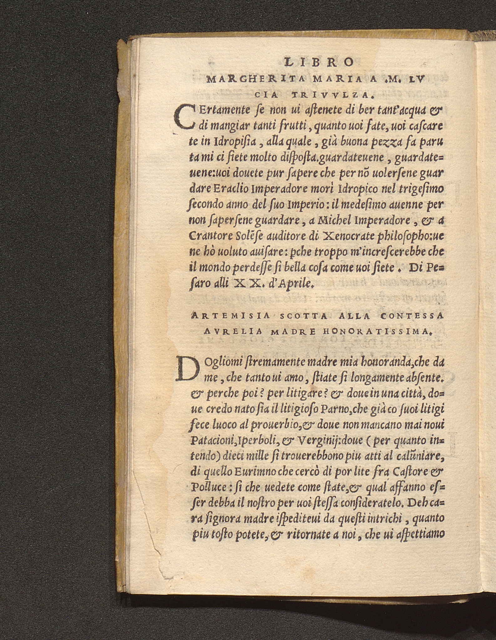 Artemisia Scotta Alla Contessa Avrelia Madre Honoratissima.