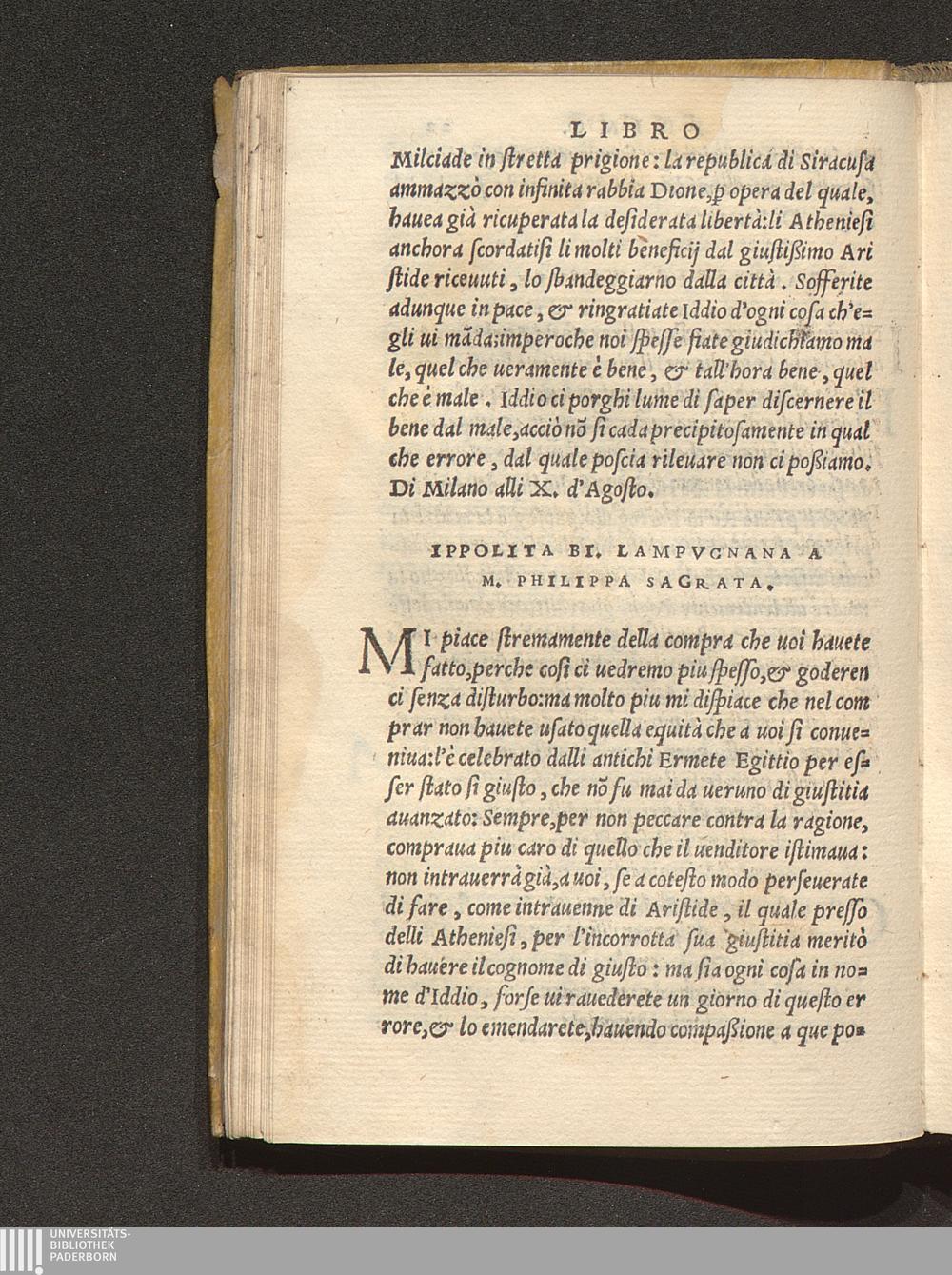 Ippolita Bi. Lampvgnana A M. Philippa Sagrata.