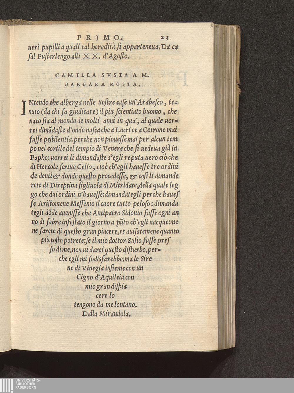 Camilla Svsia A M. Barbara Mosta.