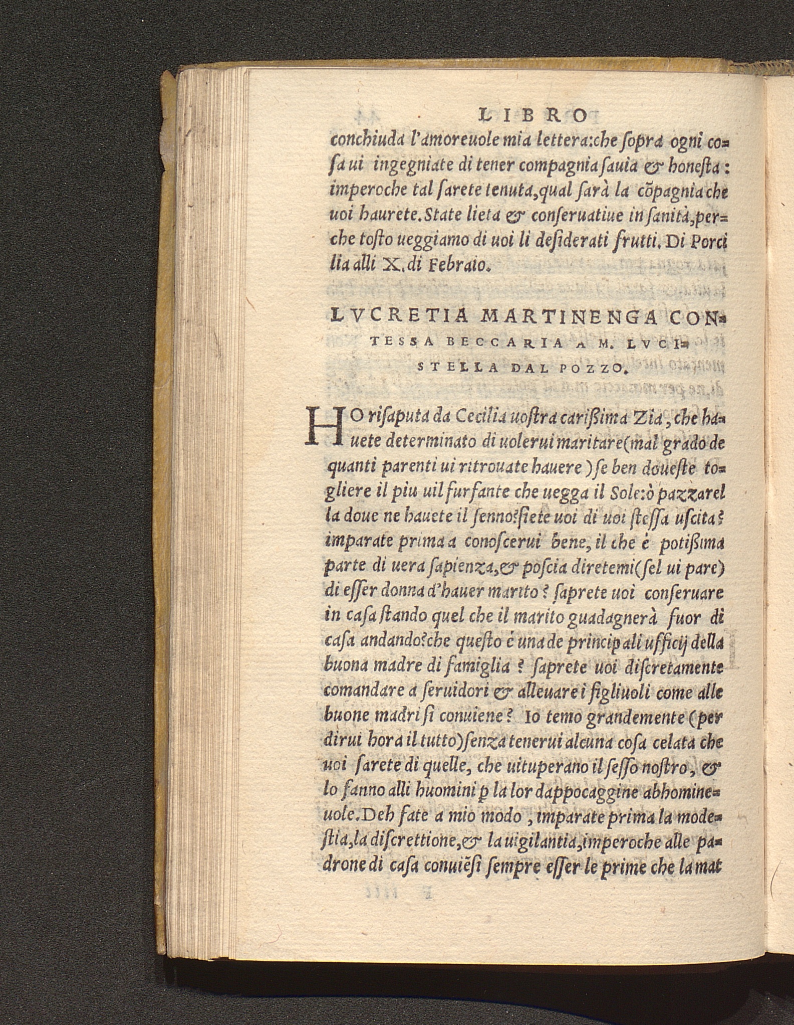 Lvcretia Martinenga Contessa Beccaria A M. Lvcistella Dal Pozzo.
