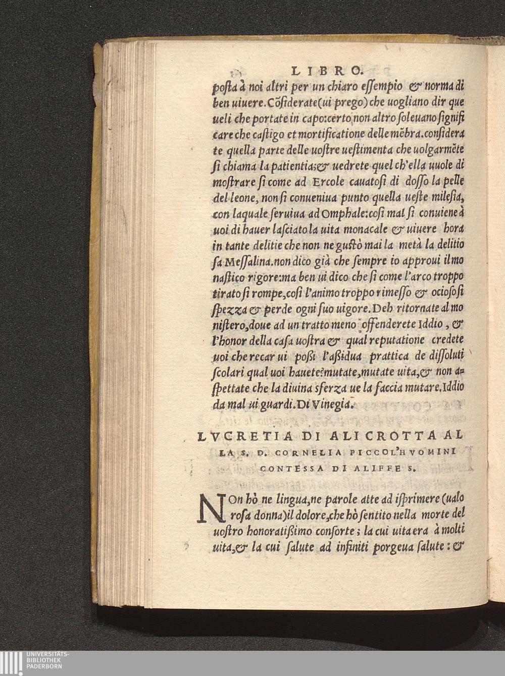 Lvcretia Di Ali Crotta Alla S. D. Cornelia Piccol'Hvomini Contessa Di Aliffe S.