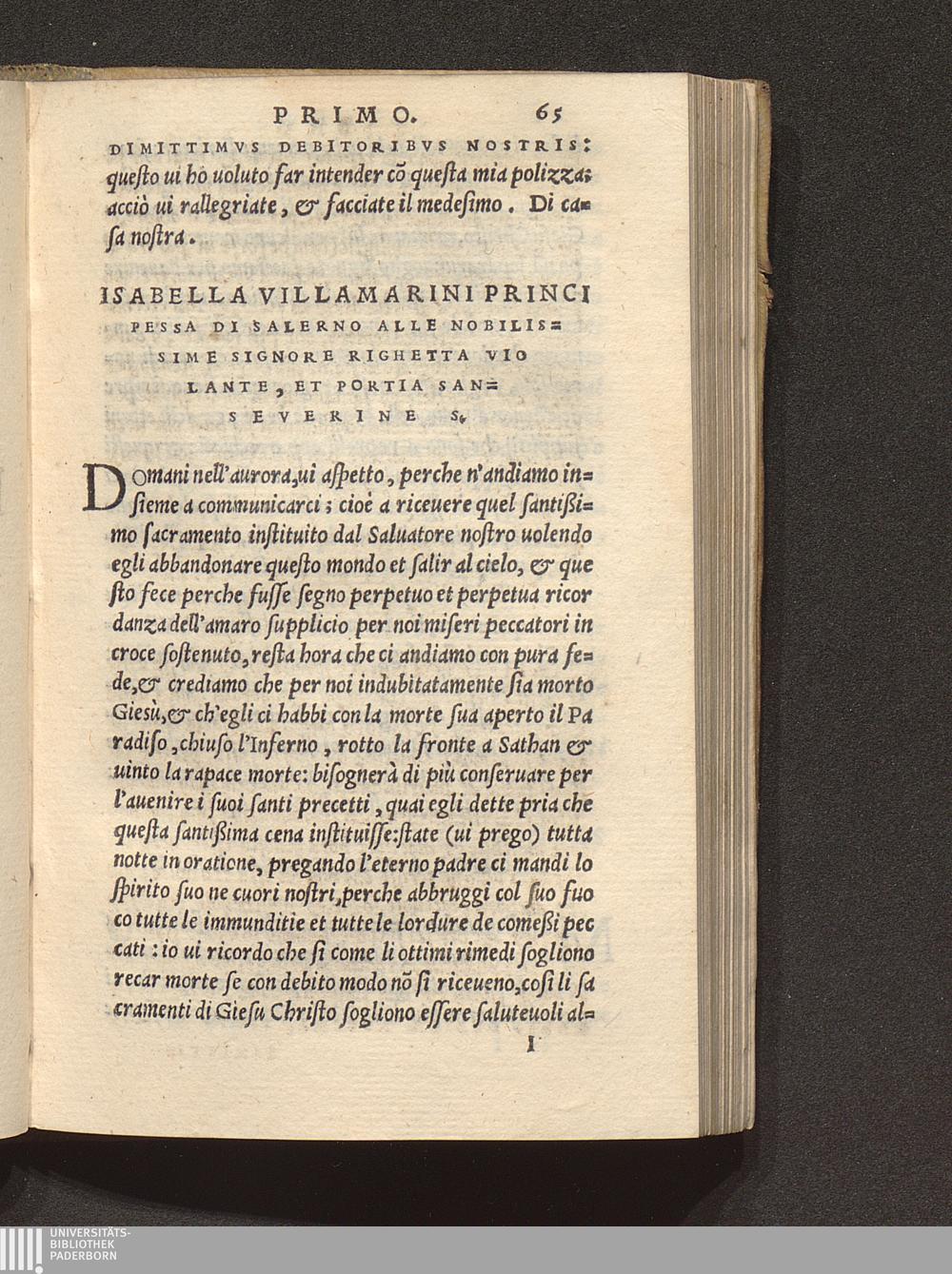 Isabella Villamarini Principessa Di Salerno Alle Nobilissime Signore Righetta Violante,[...]