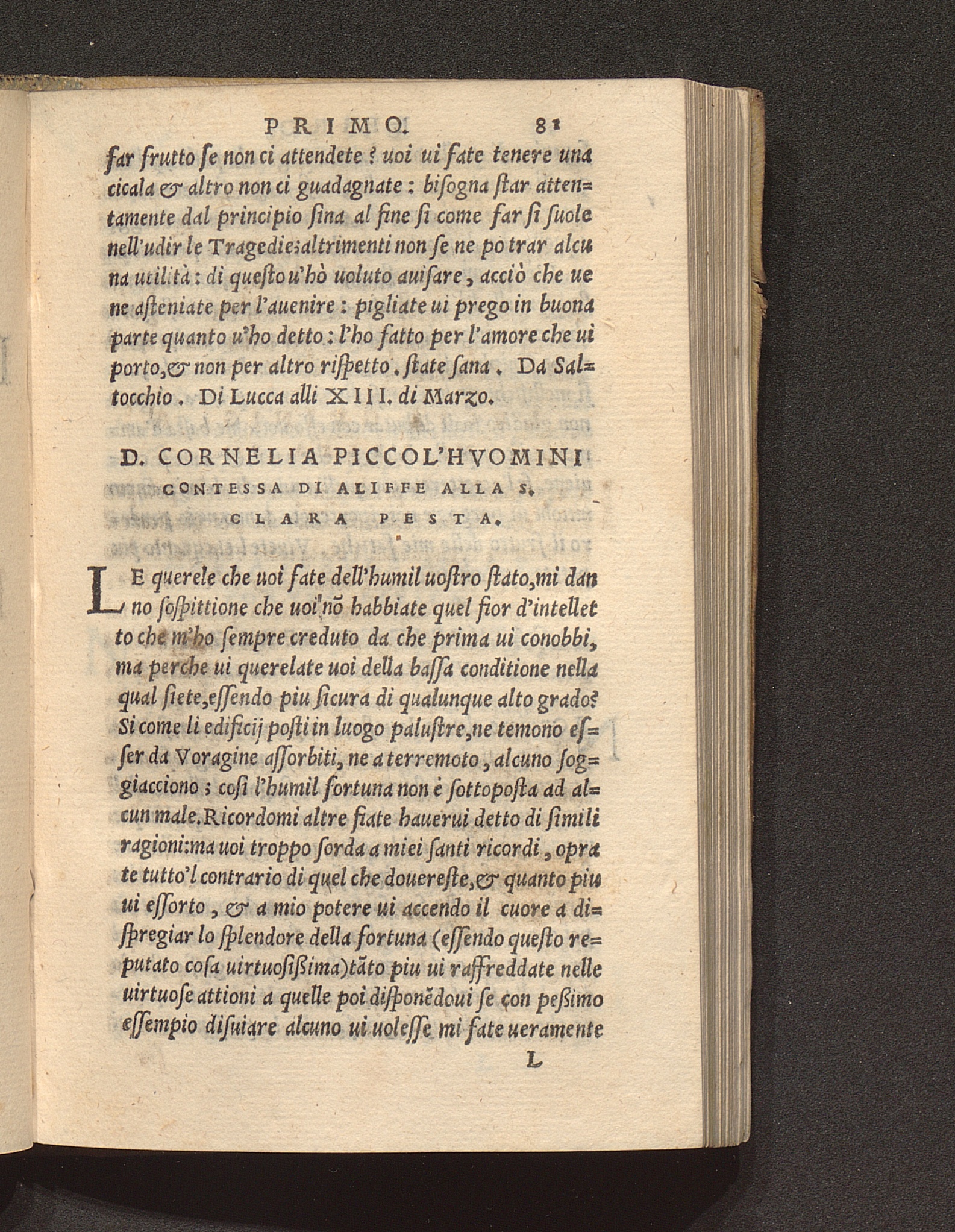 D. Cornelia Piccol'Hvomini Contessa Di Aliffe Alla S. Clara Pesta.