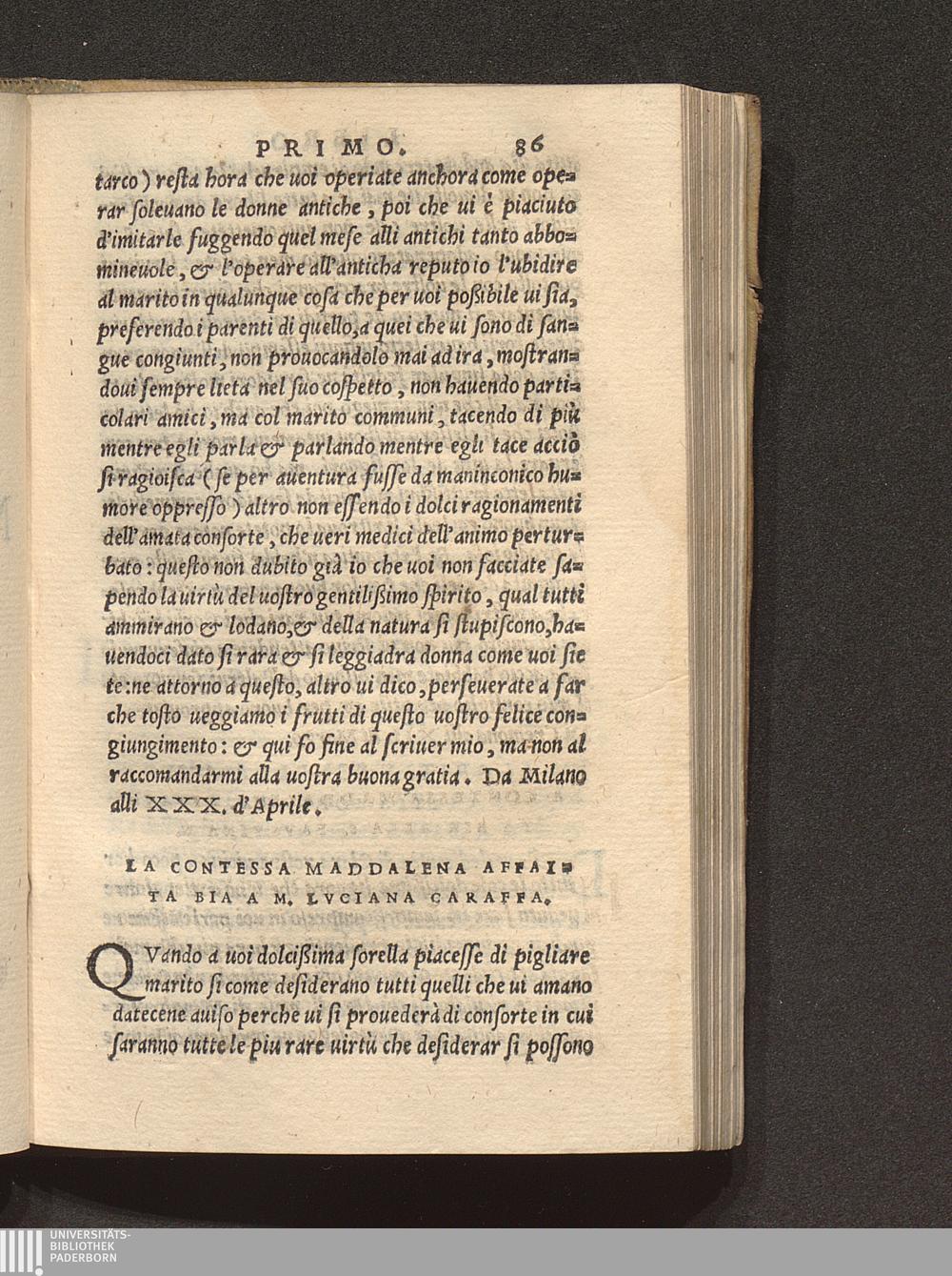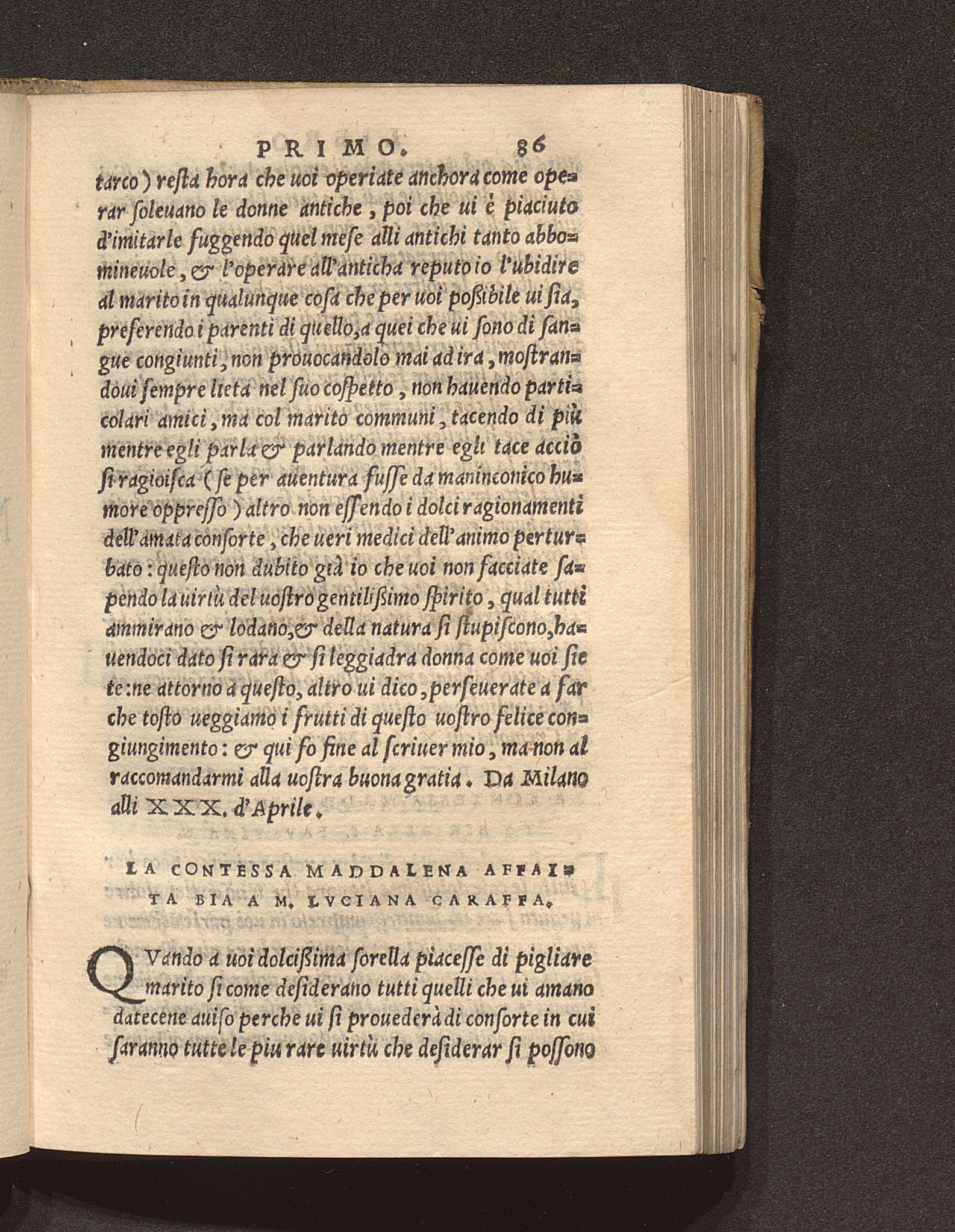 La Contessa Maddalena Affaita Bia A M. Lvciana Caraffa.
